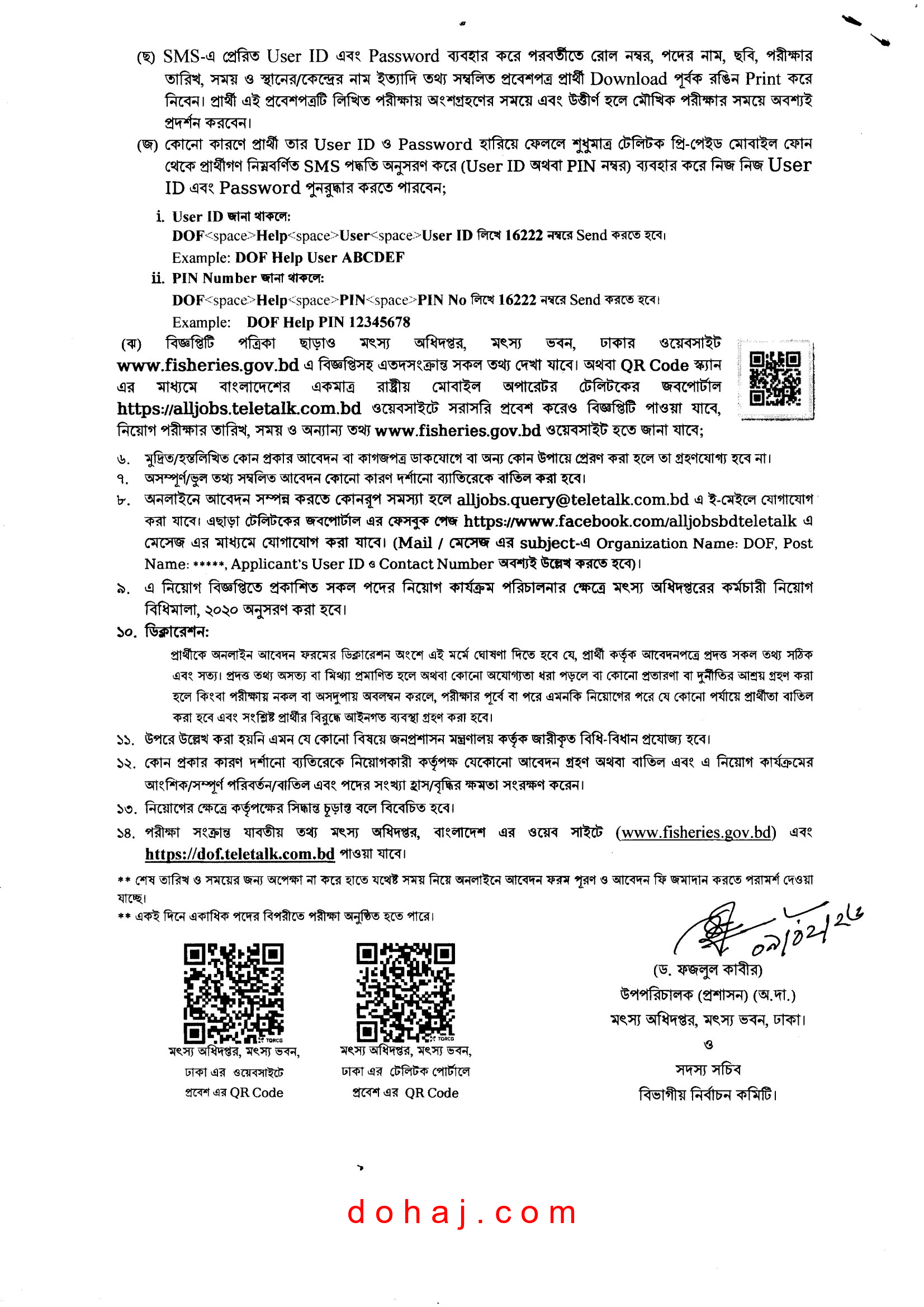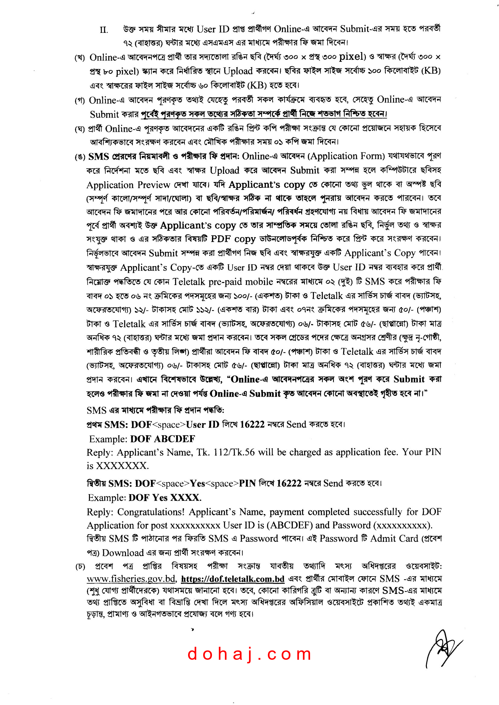 আবেদনের নিয়ম: আগ্রহী প্রার্থীরা অনলাইনে http://dof.teletalk.com.bd ওয়েবসাইটের মাধ্যমে আবেন করতে পারবেন।
