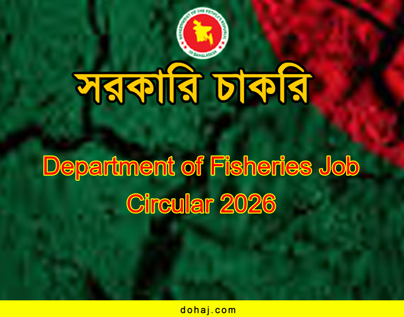 DOF Job Circular 2026: মৎস্য ও প্রাণিসম্পদ মন্ত্রণালয়ের মৎস্য অধিদপ্তর এর শূন্য পদসমূহে বিশাল সংখ্যক জনবল নিয়োগ দেয়া হবে। মৎস্য অধিদপ্তর ০৭ টি পদে মোট ২৮৪ জনকে নিয়োগ দেবে। আগ্রহী প্রার্থীরা অনলাইনে আবেদন করতে পারবেন। এই চাকরিতে সকল জেলার প্রার্থীদের আবেদন করার সুযোগ আছে। সম্পূর্ণ বিজ্ঞপ্তি (DOF Job Circular 2026) বিস্তারিত দেওয়া হল। সরকারি বেসরকারি সকল চাকরির খবর সবার আগে পড়তে আমাদের চাকরির খবর পেজে ভিজিট করুন।
