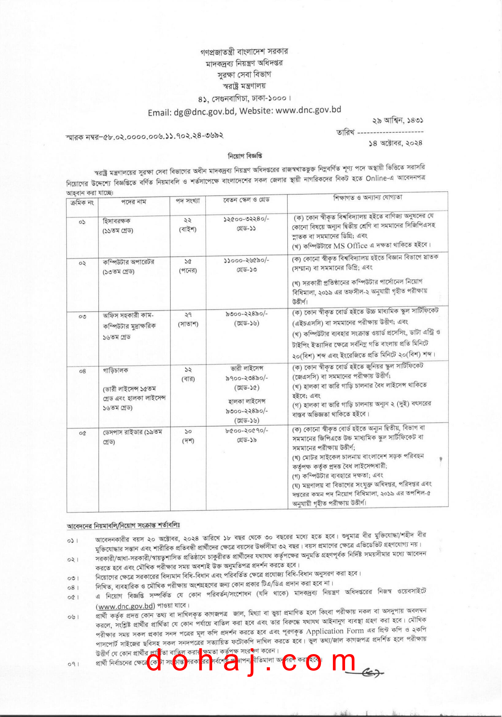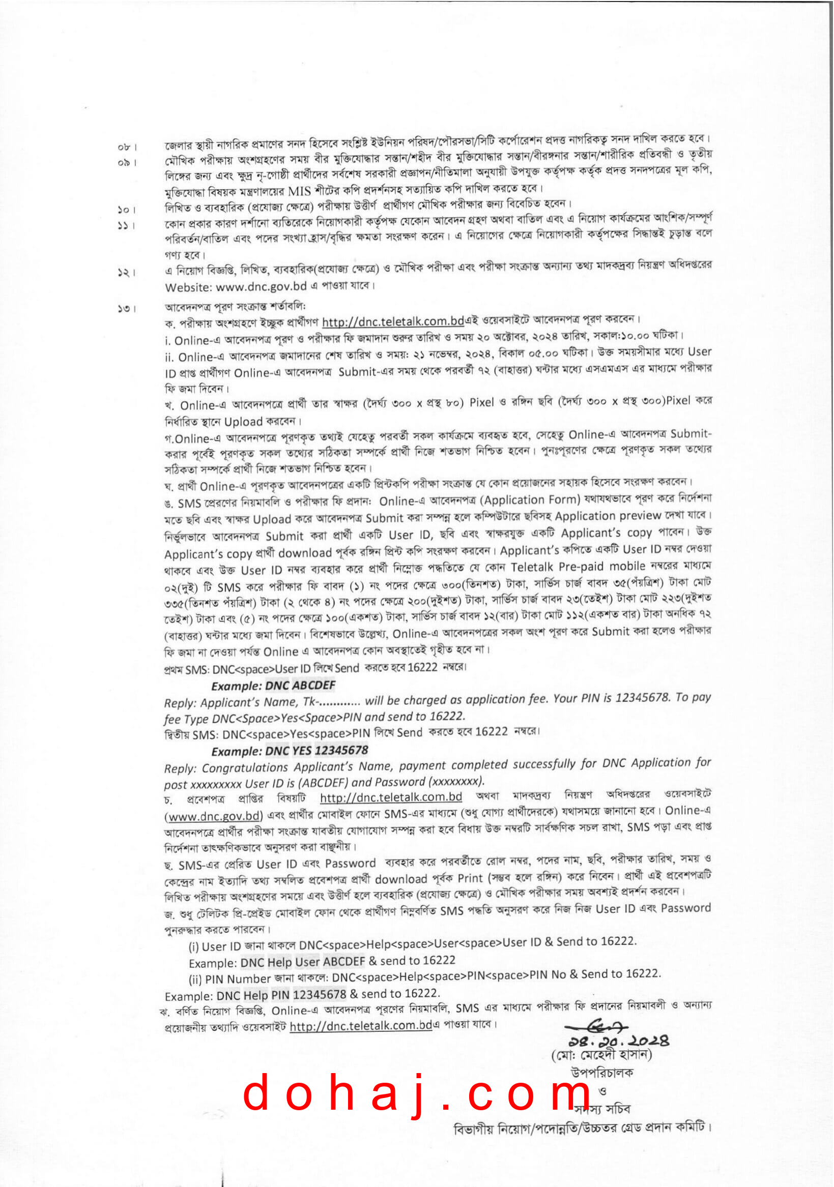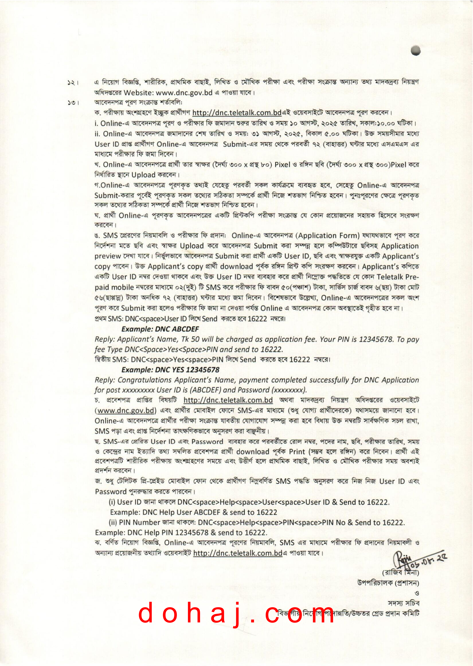 আবেদনের নিয়ম: আগ্রহী প্রার্থীরা অনলাইনে http://dnc.teletalk.com.bd ওয়েবসাইটের মাধ্যমে আবেন করতে পারবেন।