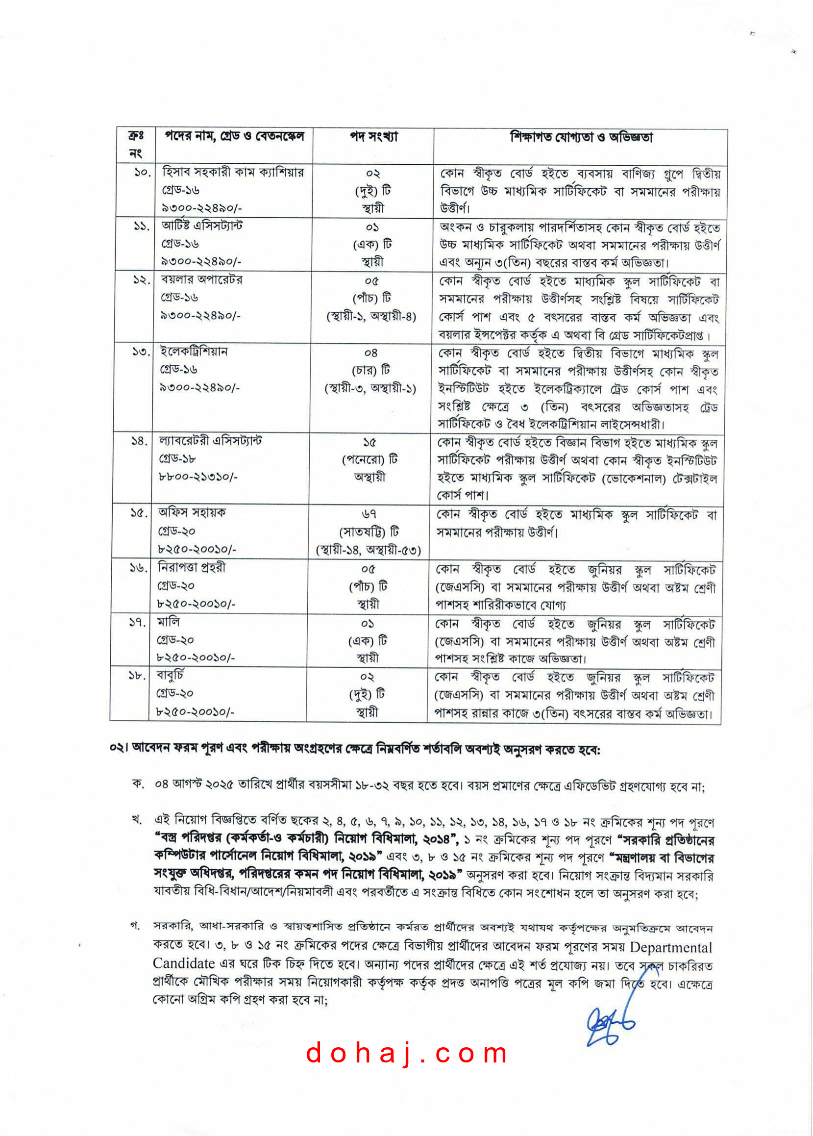 বেতন স্কেল: ১০,২০০–২৪,৬৮০/- টাকা।