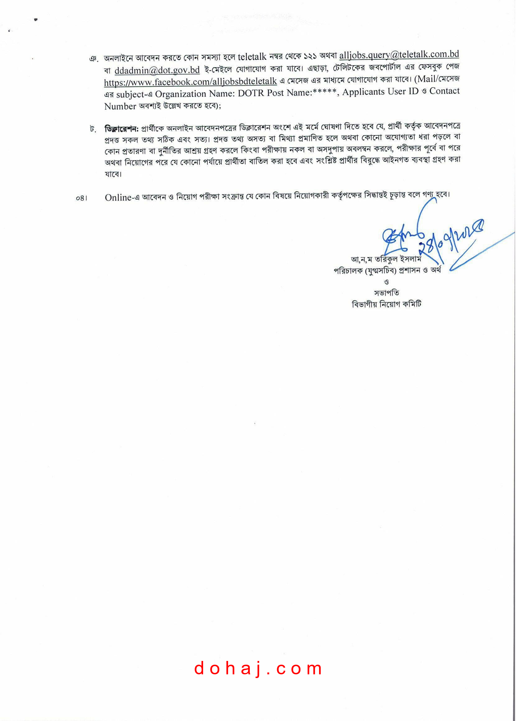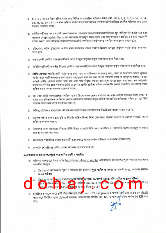 আবেদন প্রক্রিয়া: আগ্রহী প্রার্থীদের http://dotr.teletalk.com.bd/ এই ওয়েবসাইটের মাধ্যমে আবেদন করতে হবে।