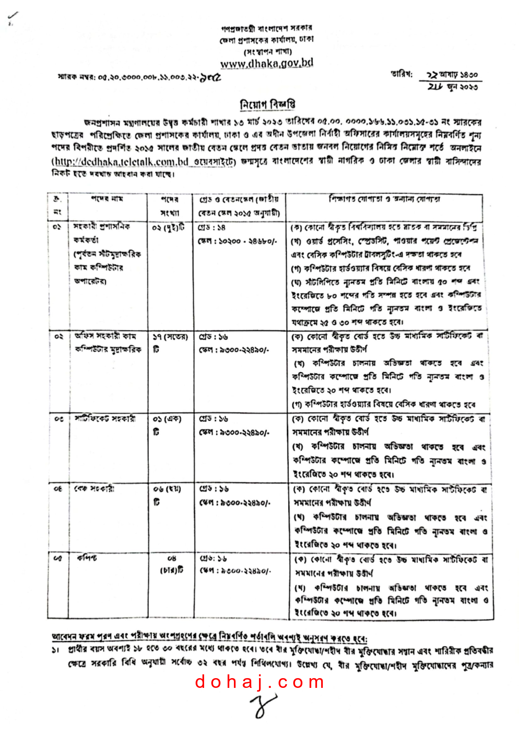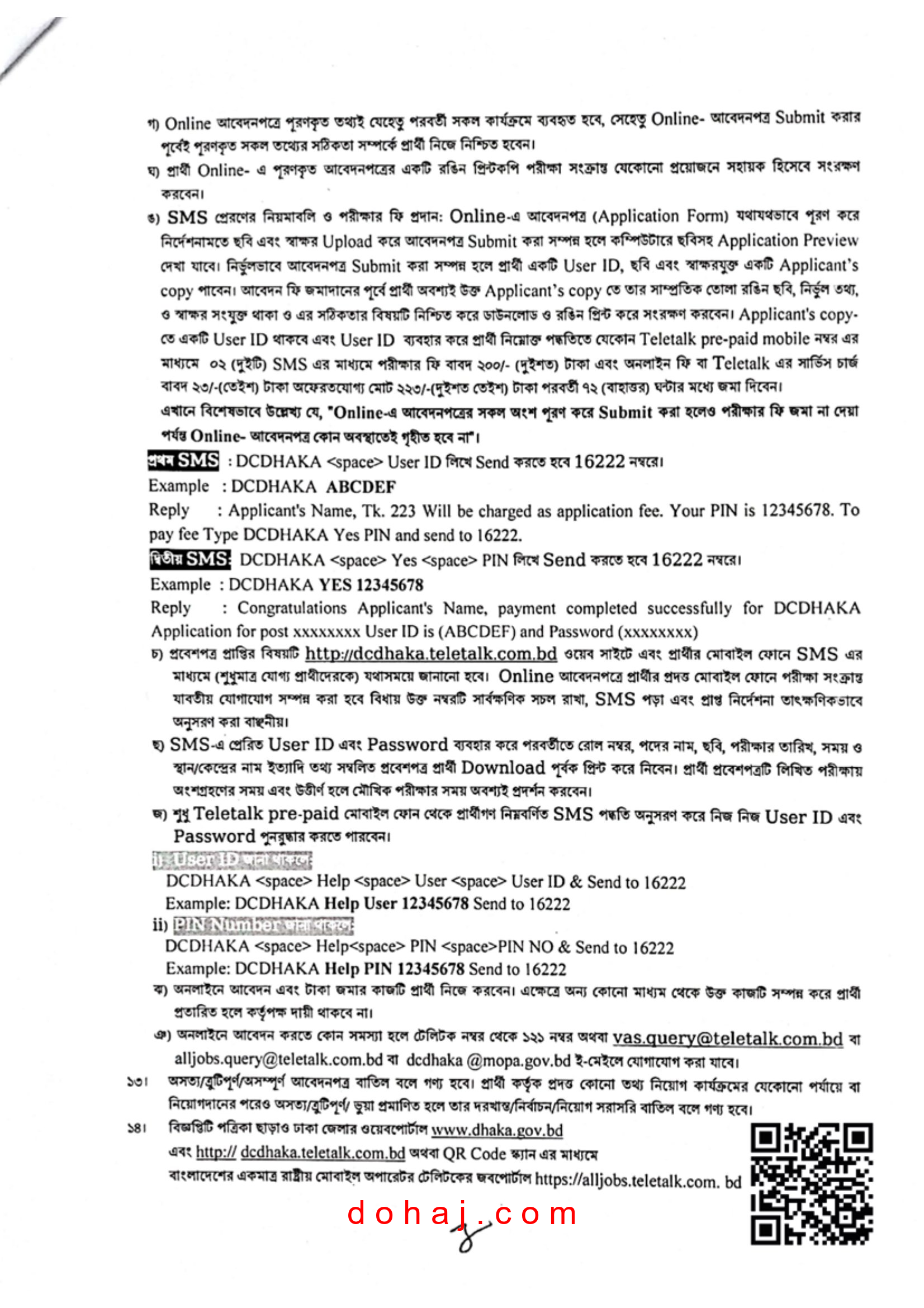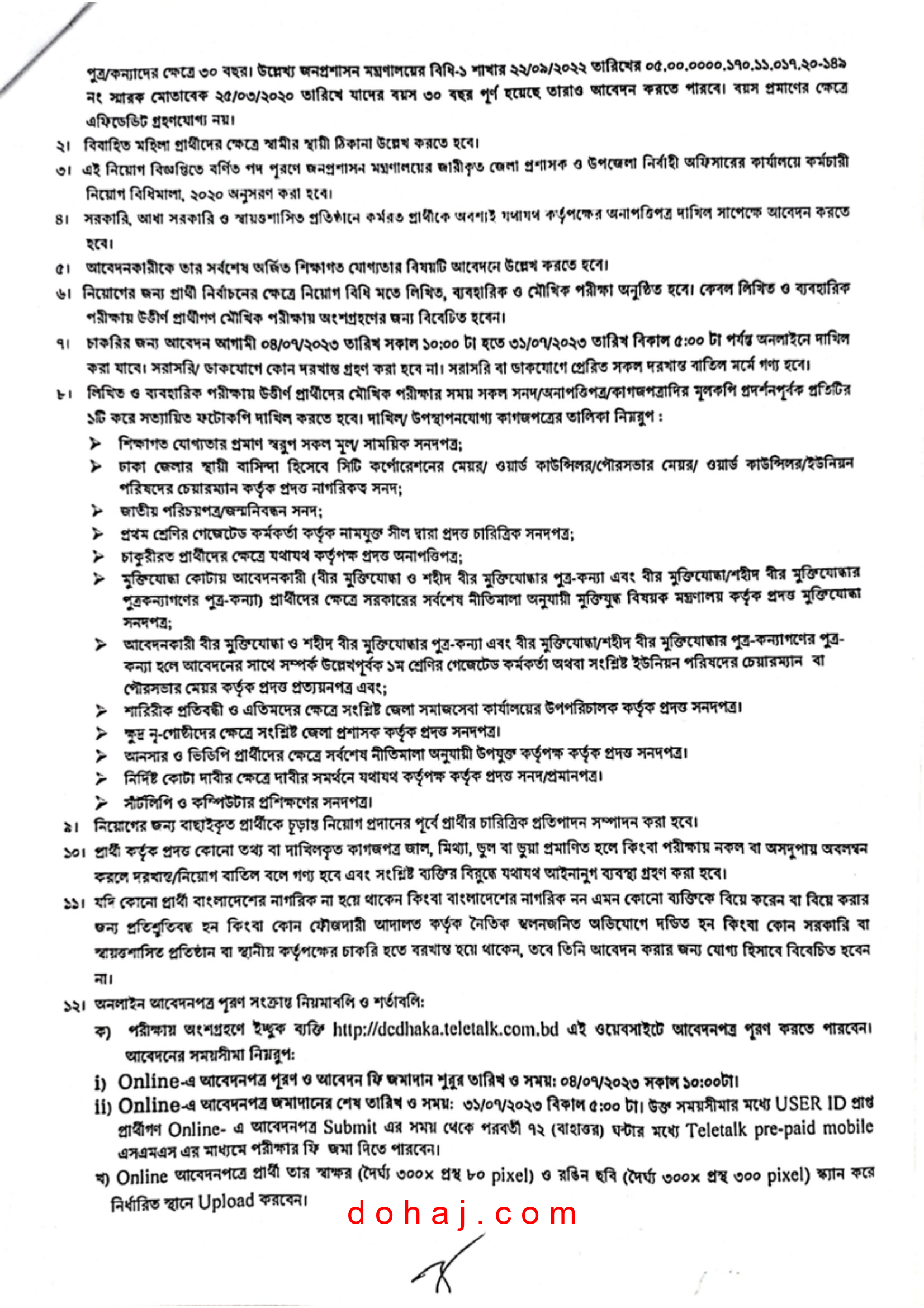 আবেদন প্রক্রিয়া: আবেদন করতে হবে অনলাইনে http://dcdhaka.teletalk.com.bd ওয়েবসাইটের মাধমে অনলাইনে আবেদনপত্র পাঠাতে হবে।