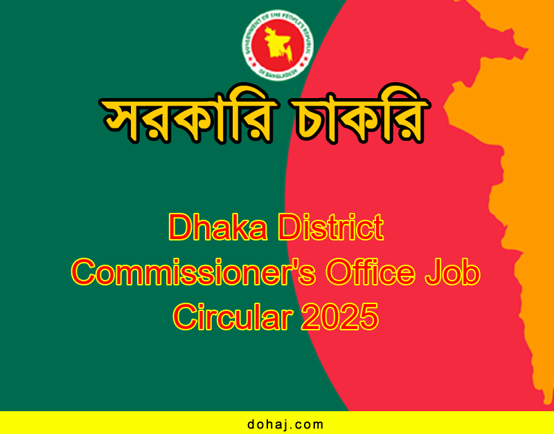 Dhaka DC Office Job Circular 2025: ঢাকা জেলা প্রশাসকের কার্যালয় এর শূন্য পদসমূহে জনবল নিয়োগ দেয়া হবে। ঢাকা জেলা প্রশাসকের কার্যালয় ০২ টি পদে মোট ১২ জনকে নিয়োগ দেয়া হবে। আগ্রহী প্রার্থেীরা অনলাইনে আবেদন করতে পারবেন। এই চাকরিতে ঢাকা জেলার স্থায়ী বাসিন্দারা শুধু আবেদন করতে পারবেন। পদগুলোতে নারী ও পুরুষ উভয়ই প্রার্থীরা আবেদন করতে পারবেন। সম্পূর্ণ বিজ্ঞপ্তি বিস্তারিত দেওয়া হল।