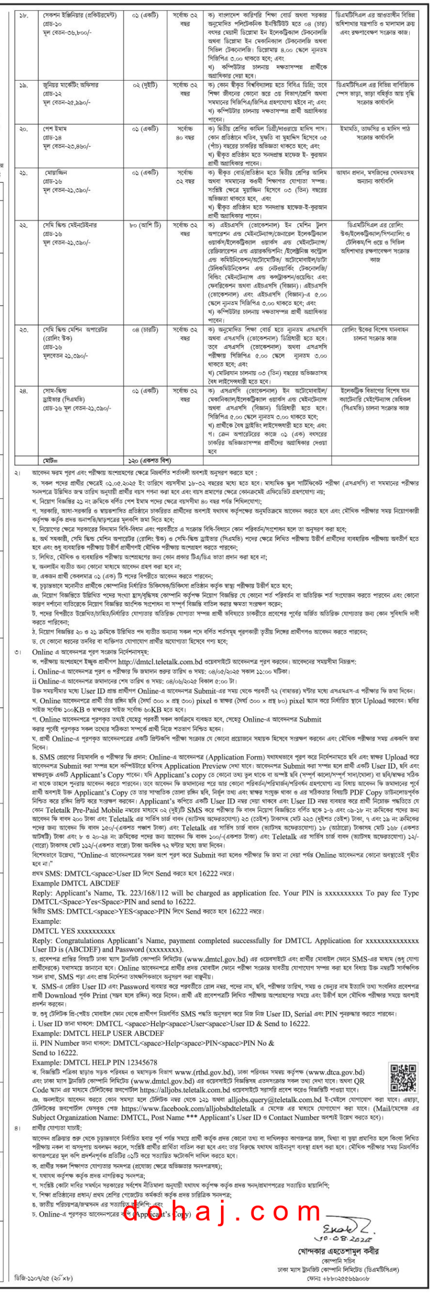 আবেদনের নিয়ম: আগ্রহী প্রার্থীরা অনলাইনে http://dmtcl.teletalk.com.bd ওয়েবসাইটের মাধ্যমে আবেদন করতে পারবেন।