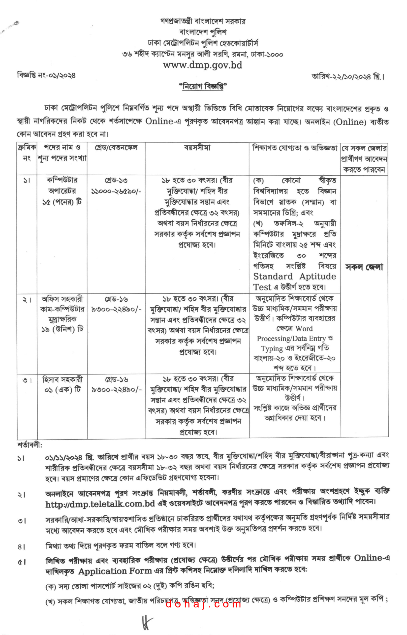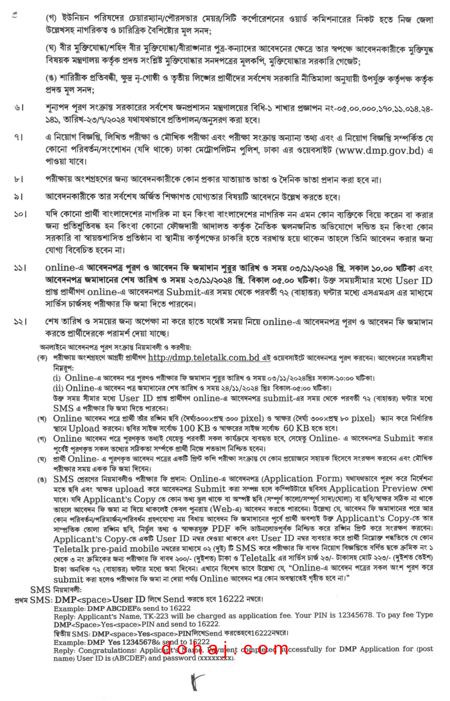 আবেদন প্রক্রিয়া: আগ্রহী প্রার্থীরা অনলাইনে http://dmp.teletalk.com.bd এই ওয়েবসাইটে গিয়ে আবেদনপত্র পূরণ করতে পারবেন।
