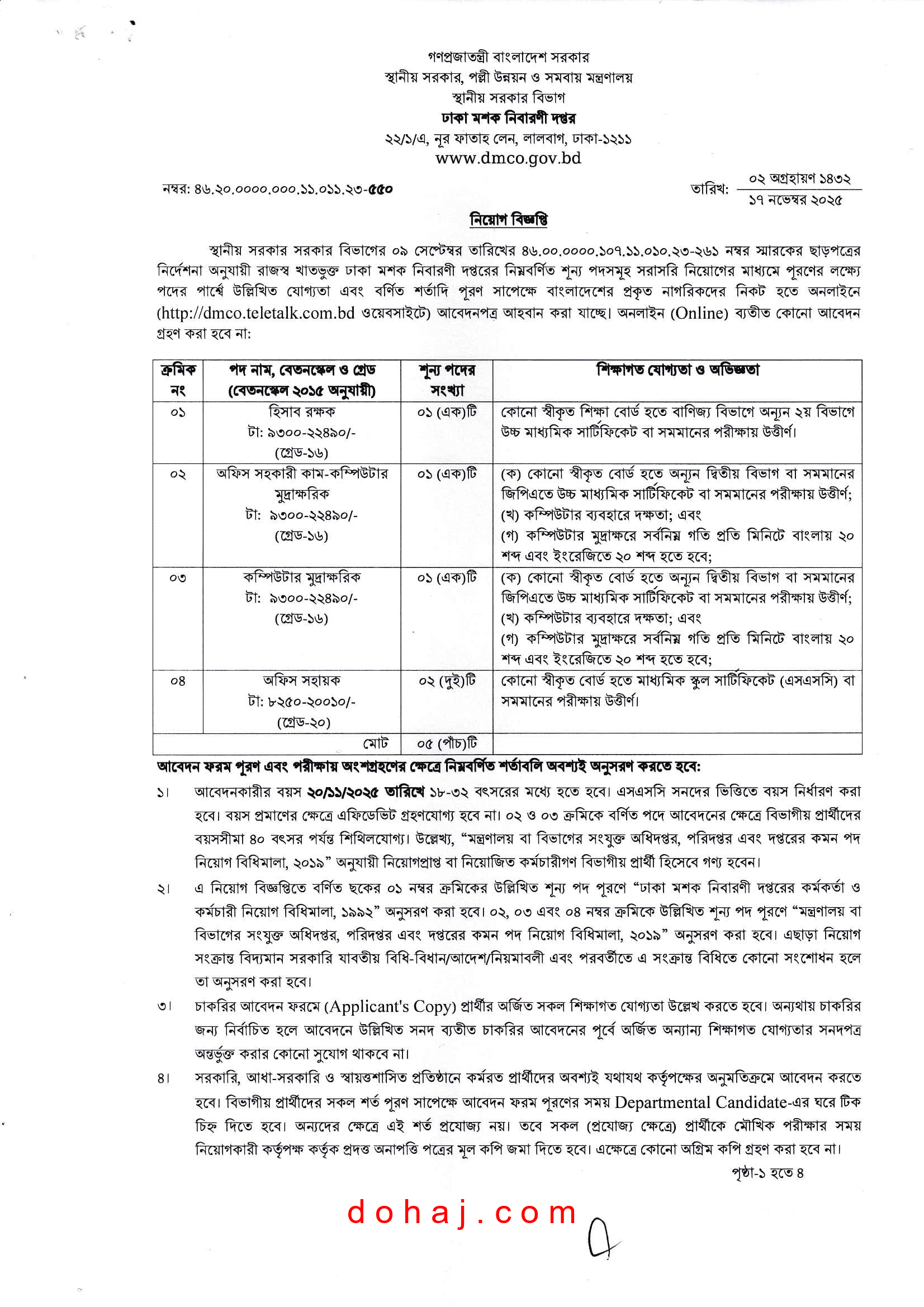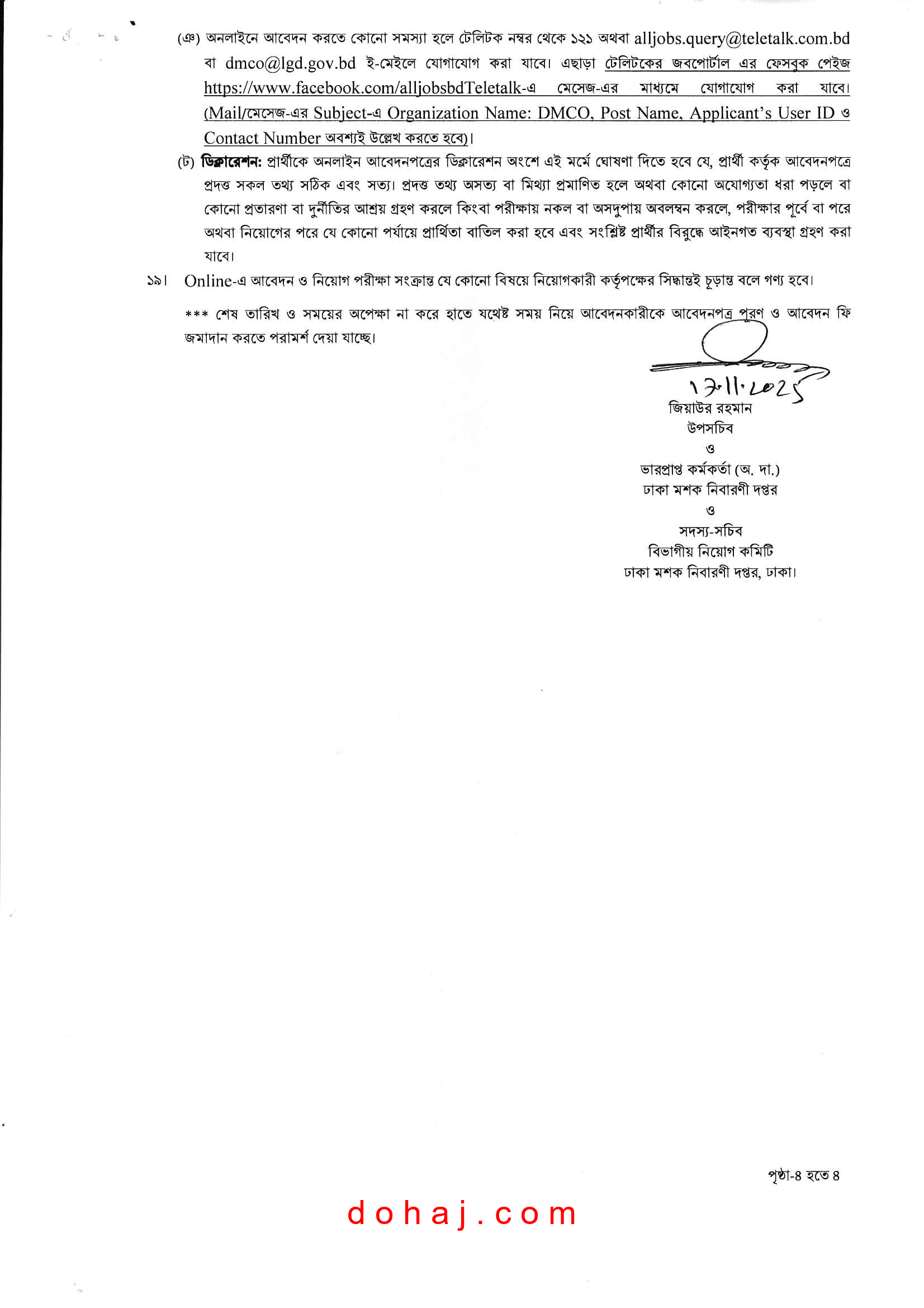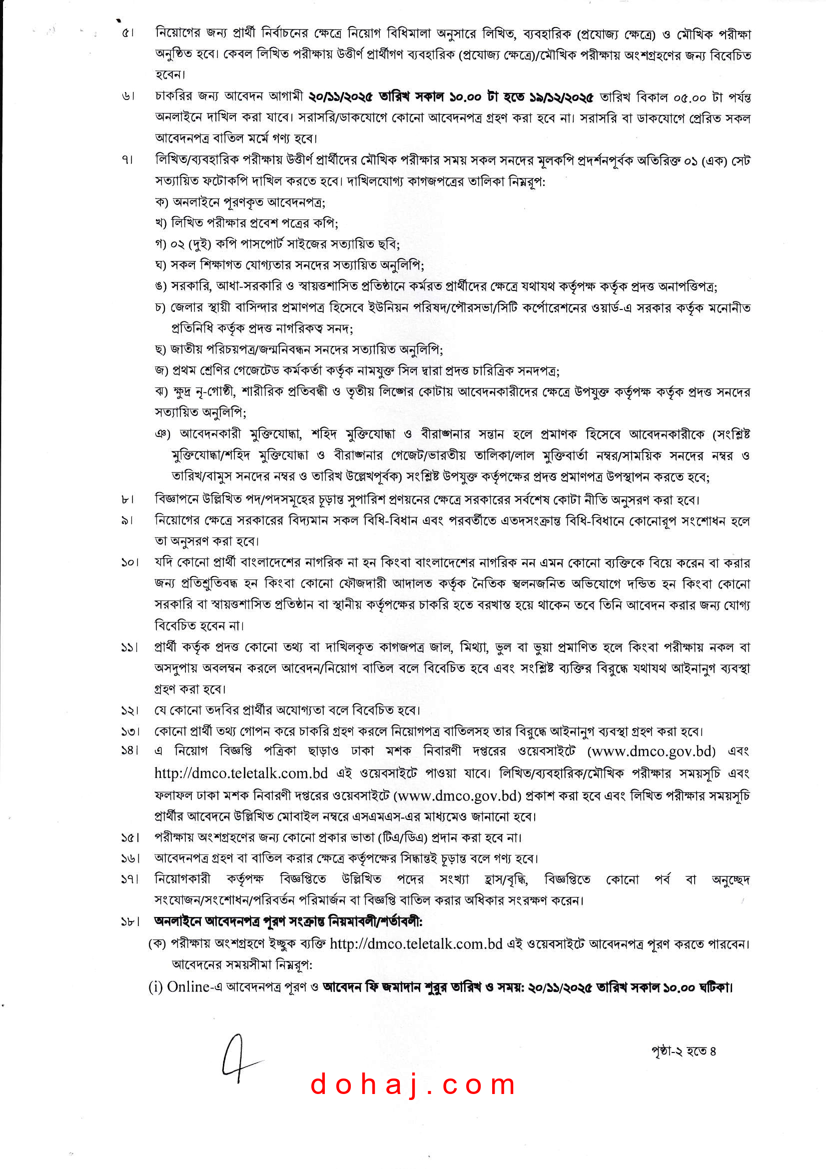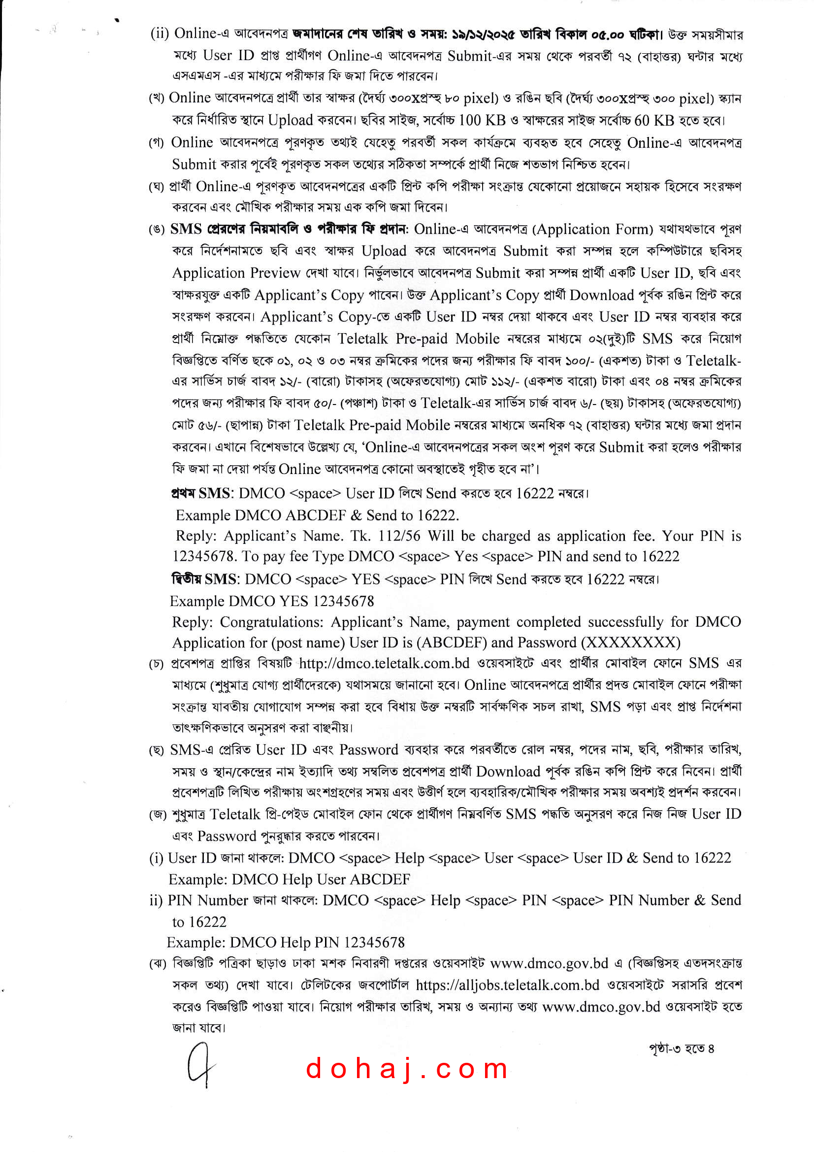 আবেদন প্রক্রিয়া: আগ্রহী প্রার্থীরা অনলাইনে https://dmco.teletalk.com.bd এই ওয়েবসাইটে গিয়ে আবেদনপত্র পূরণ করতে পারবেন।