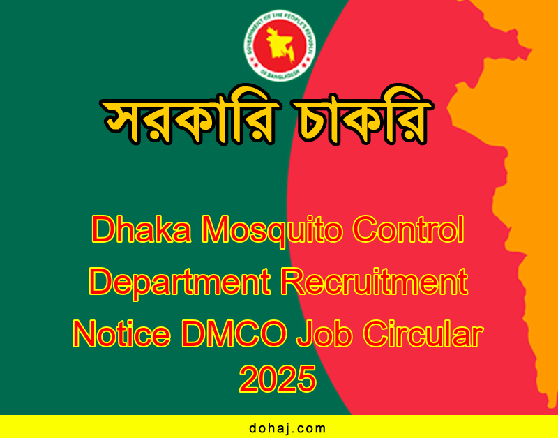 DMCO Job Circular 2025: ঢাকা মশক নিবারণী দপ্তর এর নিম্নোক্ত স্থায়ী শূন্য পদসমূহে জনবল নিয়োগের বিজ্ঞপ্তি প্রকাশ করেছে। ঢাকা মশক নিবারণী দপ্তর ০৪ টি পদে মোট ০৫ জনকে নিয়োগ দেবে। পদগুলোতে নারী ও পুরুষ উভয়ই প্রার্থীরা আবেদন করতে পারবেন। আগ্রহী প্রার্থীরা অনলাইনে আবেদন করতে পারবেন। আগ্রহ ও যোগ্যতা থাকলে আপনিও আবেদন করতে পারেন। সম্পূর্ণ বিজ্ঞপ্তি বিস্তারিত দেওয়া হল।