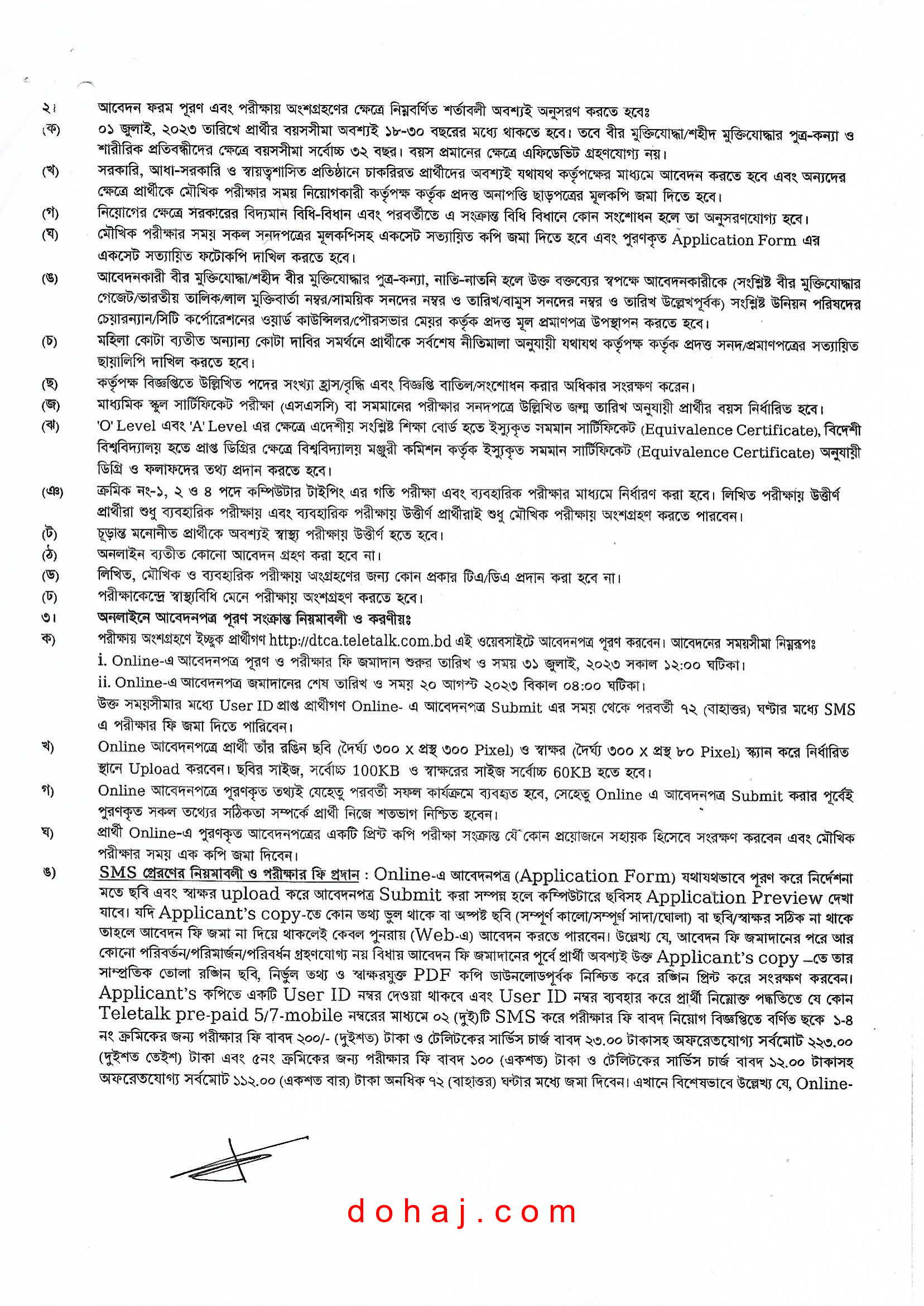 আবেদনের নিয়ম: আগ্রহী প্রার্থীরা অনলাইনে http://dtca.teletalk.com.bd ওয়েবসাইটের মাধ্যমে আবেদন করতে পারবেন।