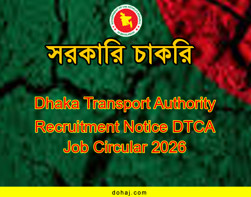 DTCA JOB CIRCULAR 2026: সড়ক পরিবহন ও সেতু মন্ত্রণালয়ের অধীনস্থ ঢাকা পরিবহন সমন্বয় কর্তৃপক্ষ (ডিটিসিএ) বিভিন্ন পদে সরকারি বিধি মোতাবেক জনবল নিয়োগ দেবে। ঢাকা পরিবহন সমন্বয় কর্তৃপক্ষ ০৯ টি পদে মোট ২৩ জনকে নিয়োগ দেবে। আগ্রহ ও যোগ্যতা থাকলে আপনিও আবেদন করতে পারেন। আগ্রহী প্রার্থীরা অনলাইনে আবেদন করতে পারবেন। সম্পূর্ণ বিজ্ঞপ্তি দেওয়া হল-