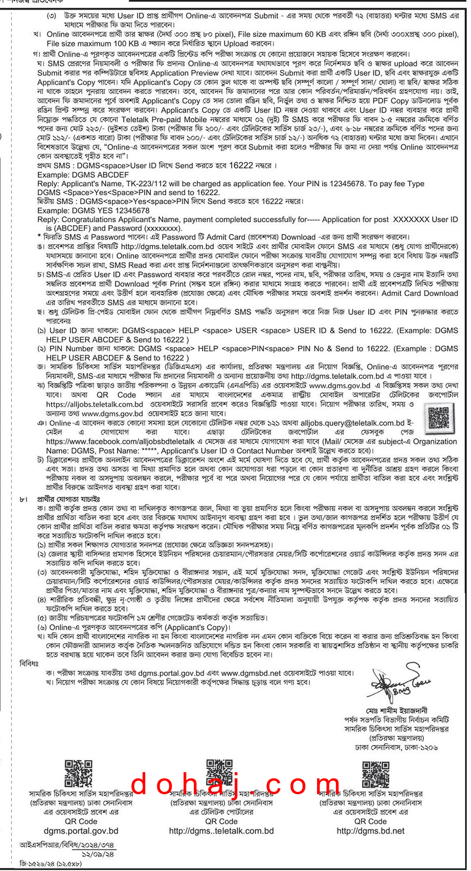 আবেদনের নিয়ম: আগ্রহী প্রার্থীরা অনলাইনে http://dgms.teletalk.com.bd ওয়েবসাইটের মাধ্যমে আবেদন করতে পারবেন।