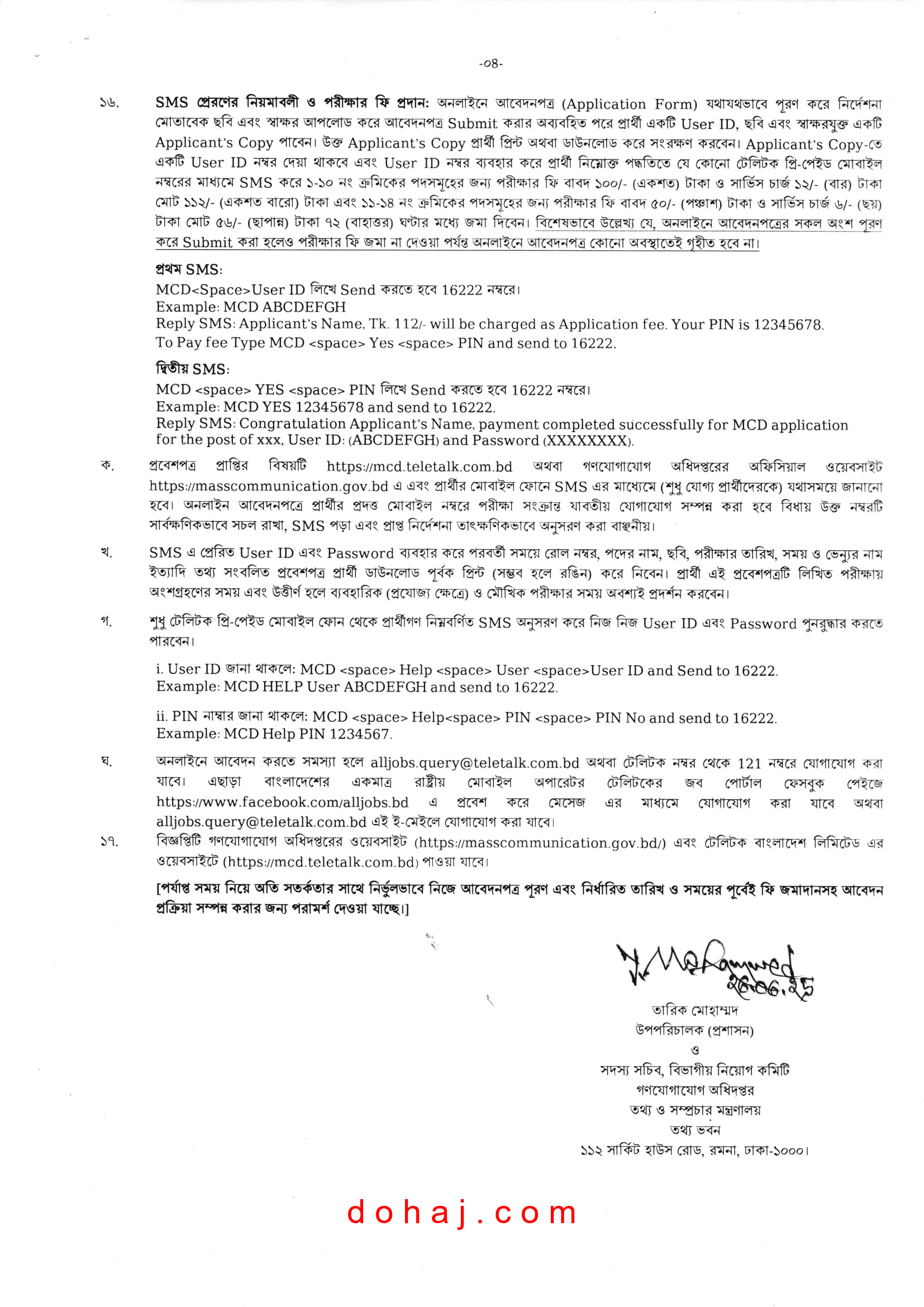 আবেদন প্রক্রিয়া: আবেদন করতে হবে অনলাইনে http://mcd.teletalk.com.bd ওয়েবসাইটের মাধমে অনলাইনে আবেদনপত্র পাঠাতে হবে।