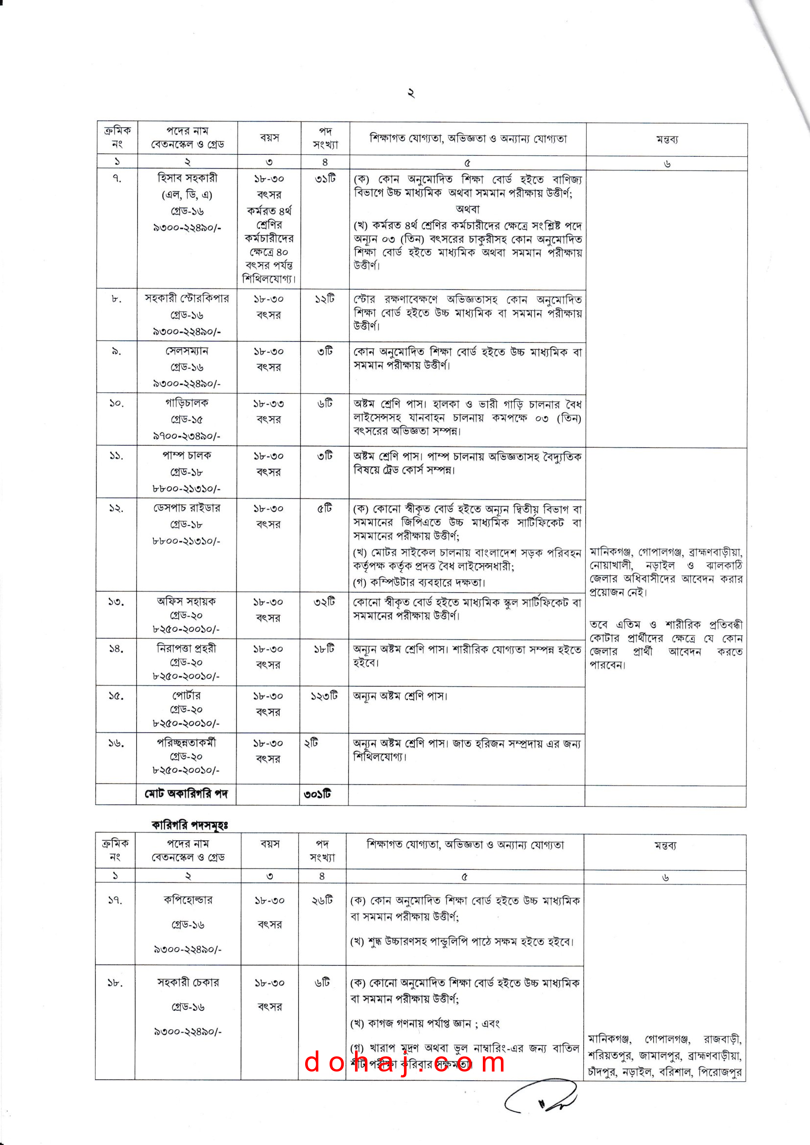 বেতন স্কেল: ৮,২৫০ – ২০,০১০ টাকা।