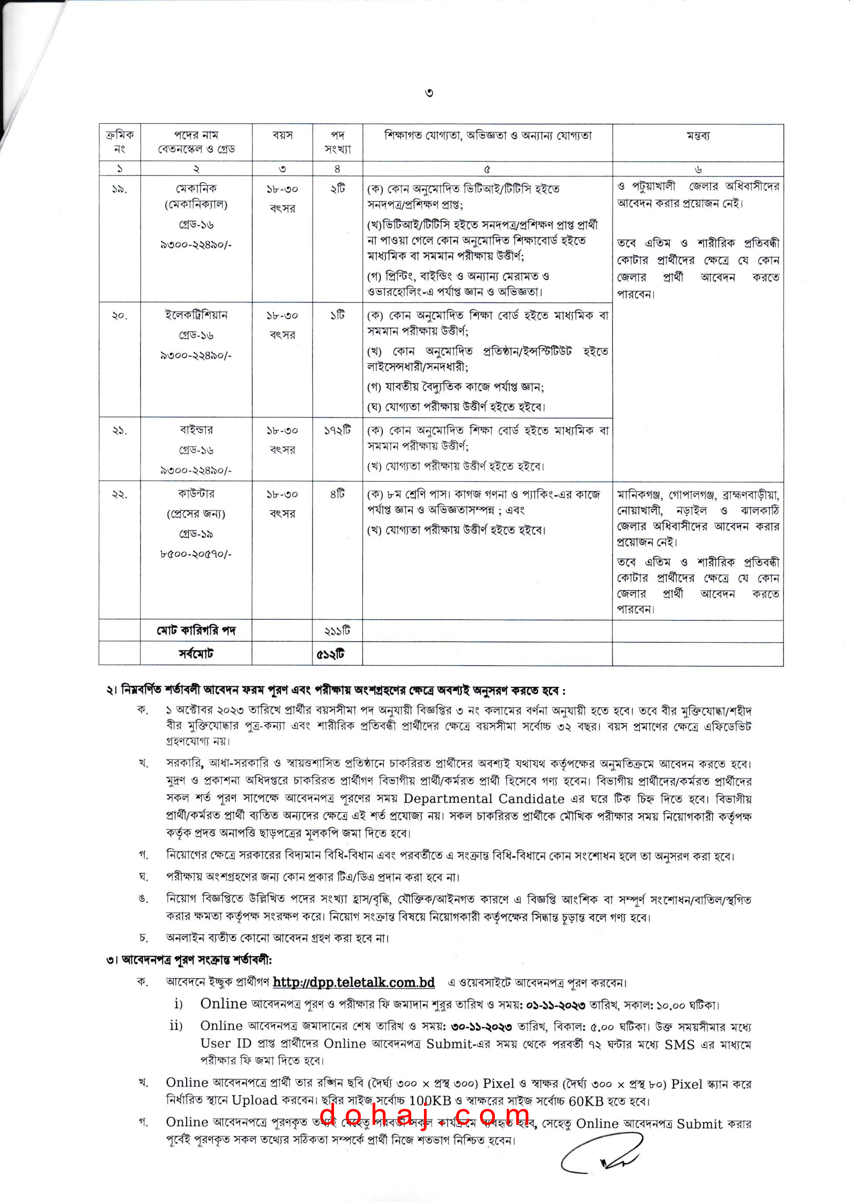 আবেদনের নিয়ম: আগ্রহী প্রার্থীরা অনলাইনের http://dpp.teletalk.com.bd ওয়েবসাইটের মাধ্যমে আবেদন করতে পারবে।