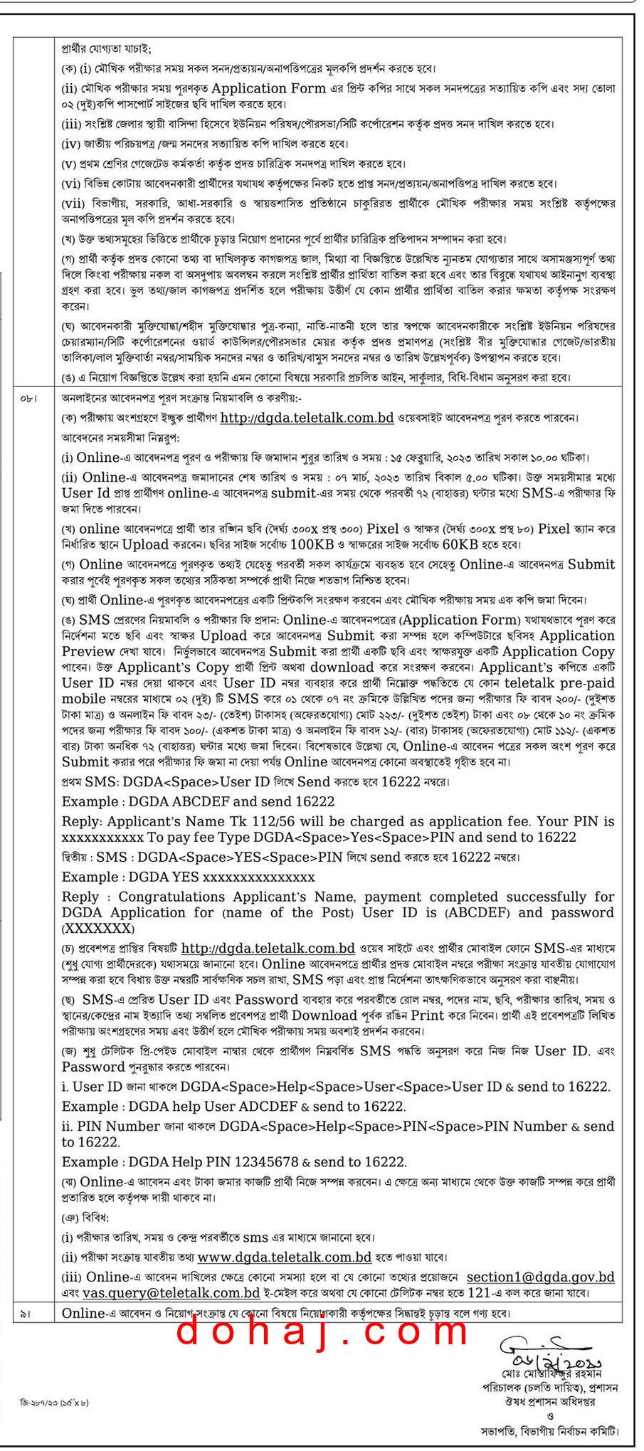 আবেদনের নিয়ম: আগ্রহী প্রার্থীরা অনলাইনে http://dgda.teletalk.com.bd ওয়েবসাইটের মাধ্যমে আবেদন করতে পারবেন।