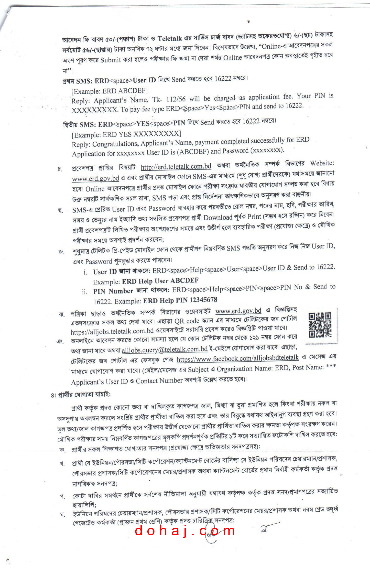 আবেদনের নিয়ম: আগ্রহী প্রার্থীরা অনলাইনে http://erd.teletalk.com.bd ওয়েবসাইটের মাধ্যমে আবেদন করতে পারবেন।