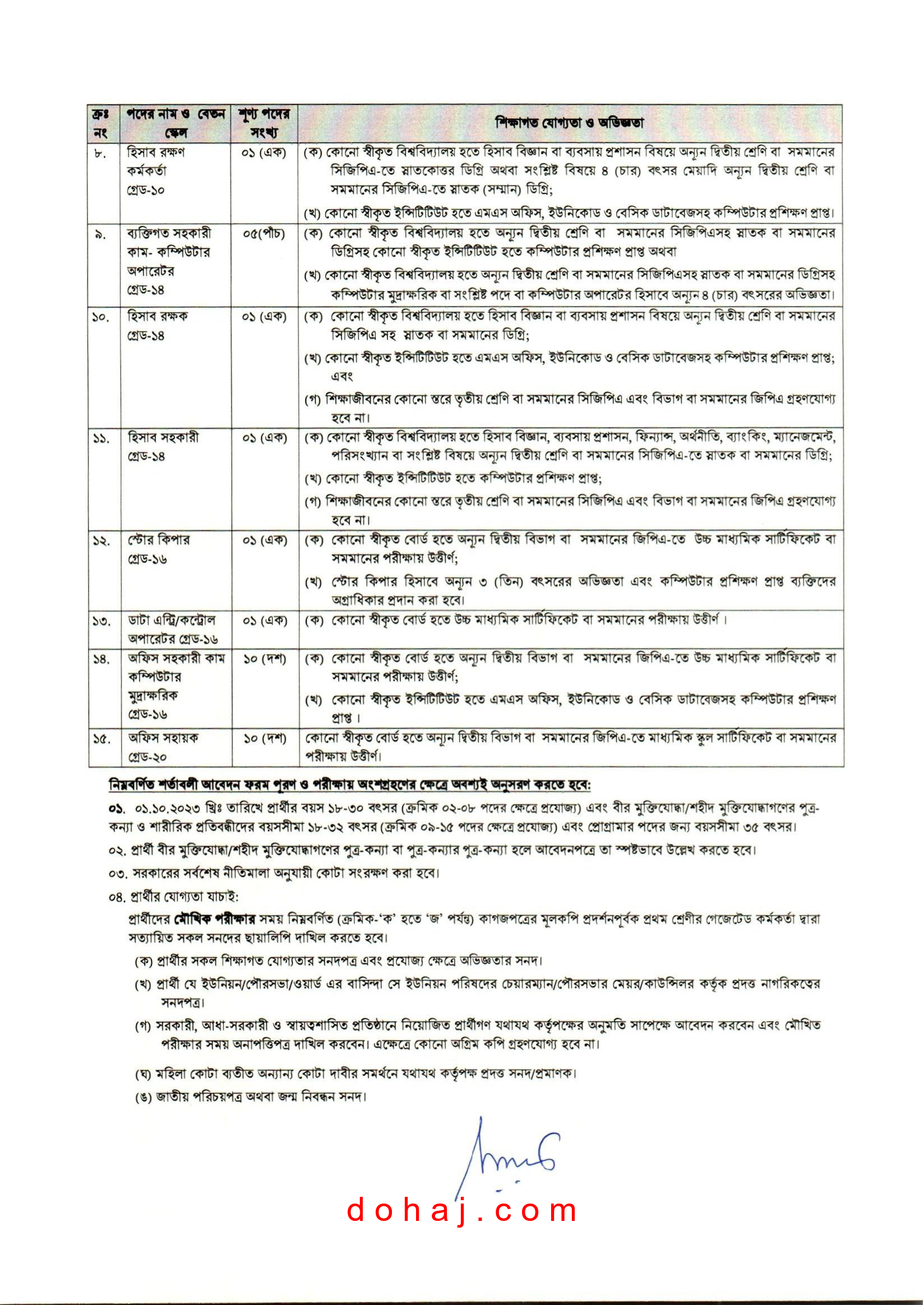 শিক্ষাগত যোগ্যতা: হিসাব বিজ্ঞান বা ব্যবসায় প্রসাশন বিষয়ে স্নাতক বা সমমানের ডিগ্রী।