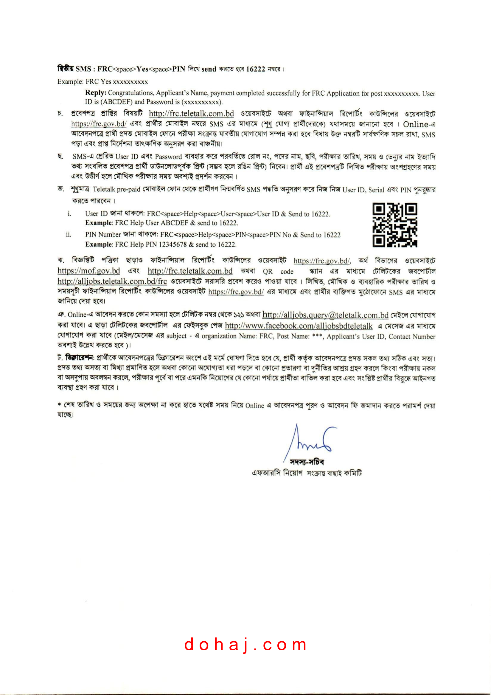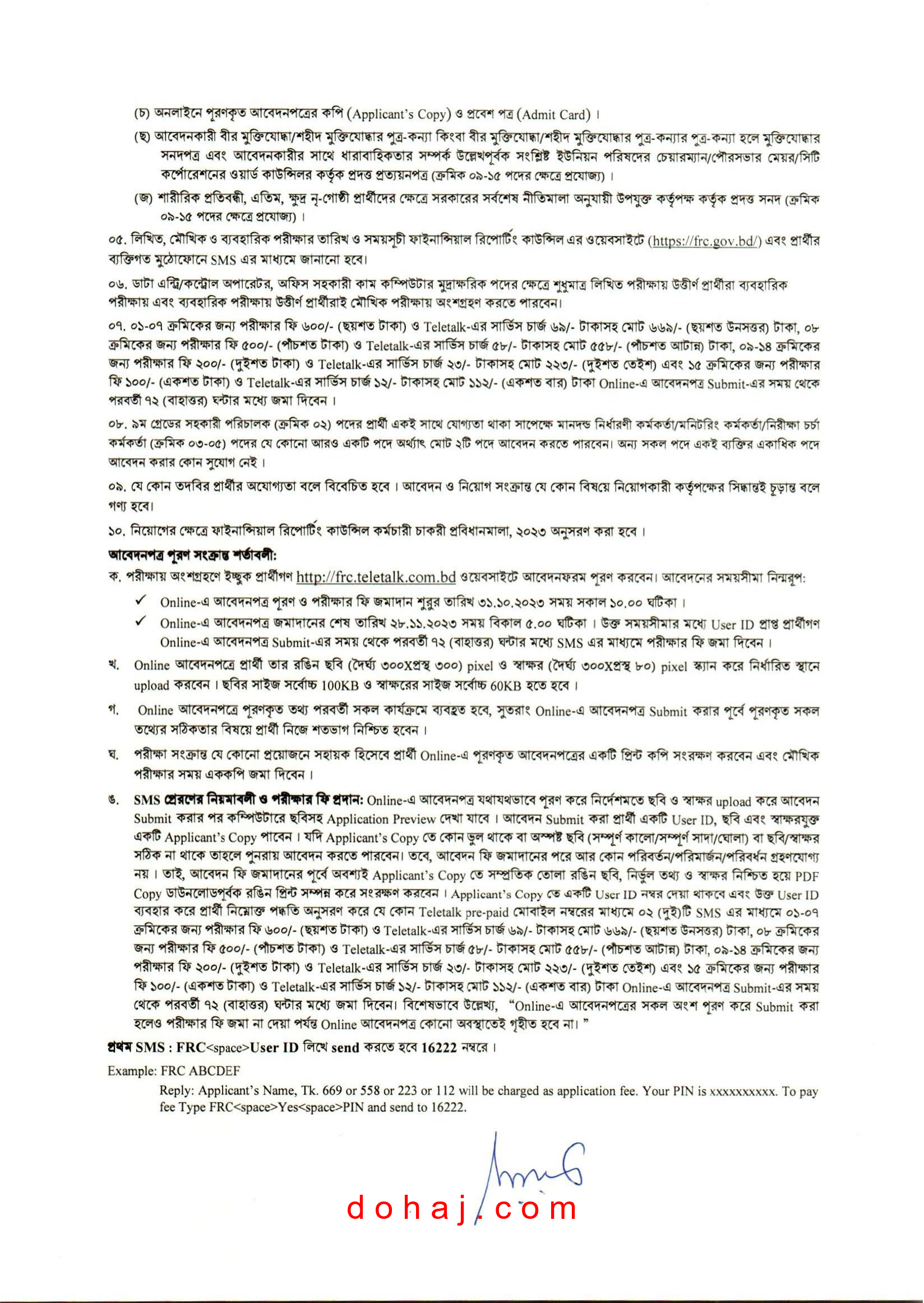 আবেদনের নিয়ম: আগ্রহী প্রার্থীরা অনলাইনের http://frc.teletalk.com.bd ওয়েবসাইটের মাধ্যমে আবেদন করতে পারবে।