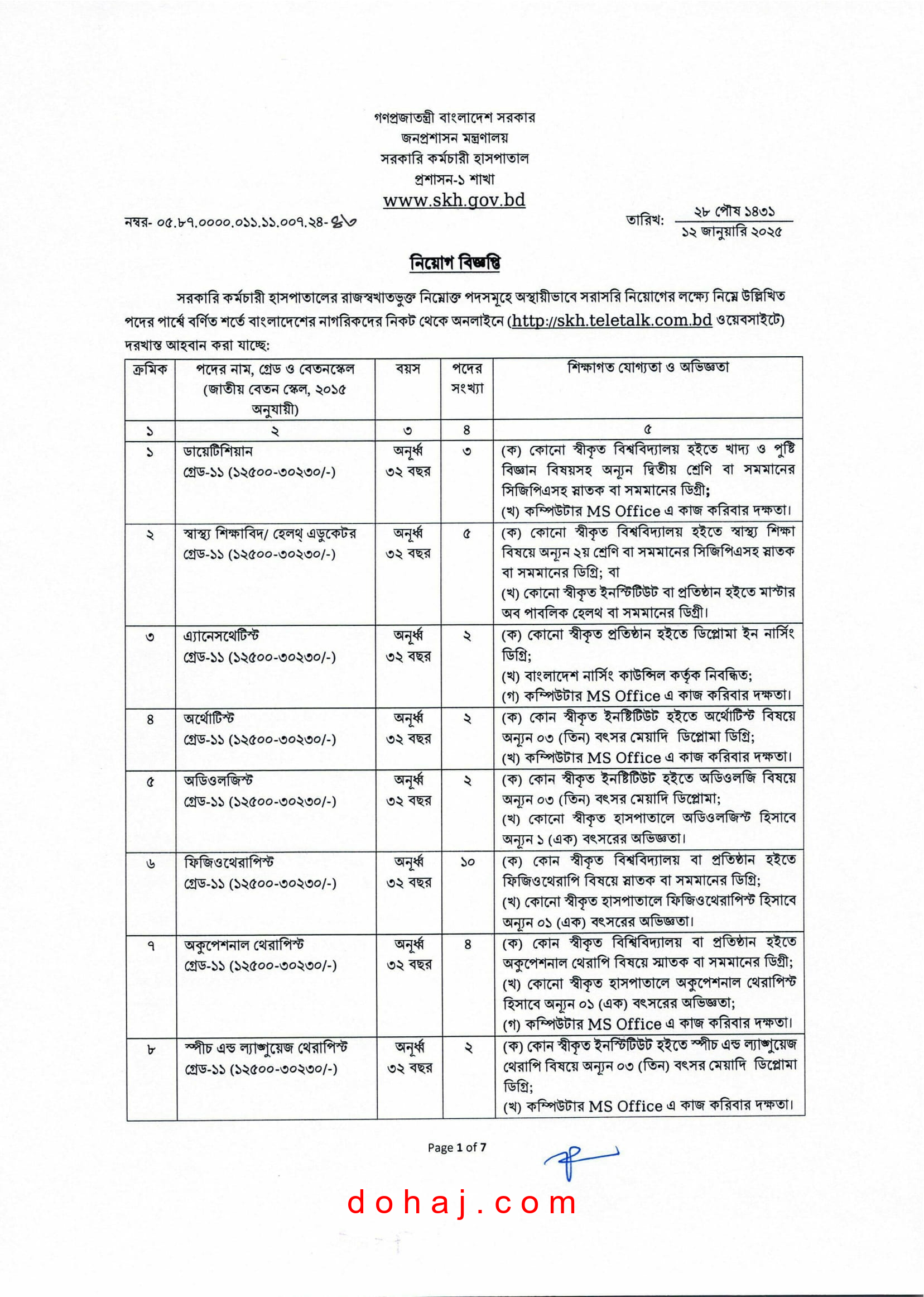 SKH Job Circular 2025: জনপ্রশাসন মন্ত্রণালয়ের সার্বিক তত্তাবধানে পরিচালিত সরকারি কর্মচারী হাসপাতালের শূন্য পদসমূহে সরাসরি জনবল নিয়োগের নিয়োগ বিজ্ঞপ্তি প্রকাশ হয়েছে। সরকারি কর্মচারী হাসপাতাল ৩৬ টি পদে মোট ১৯১ জনকে নিয়োগ দেবে। আগ্রহী প্রার্থীরা অনলাইনে আবেদন করতে পারবেন। এই চাকরিতে সকল জেলার প্রার্থীরা আবেদন করতে পারবেন। আগ্রহ ও যোগ্যতা থাকলে আপনিও আবেদন করতে পারেন। সম্পূর্ণ বিজ্ঞপ্তি বিস্তারিত দেওয়া হল।