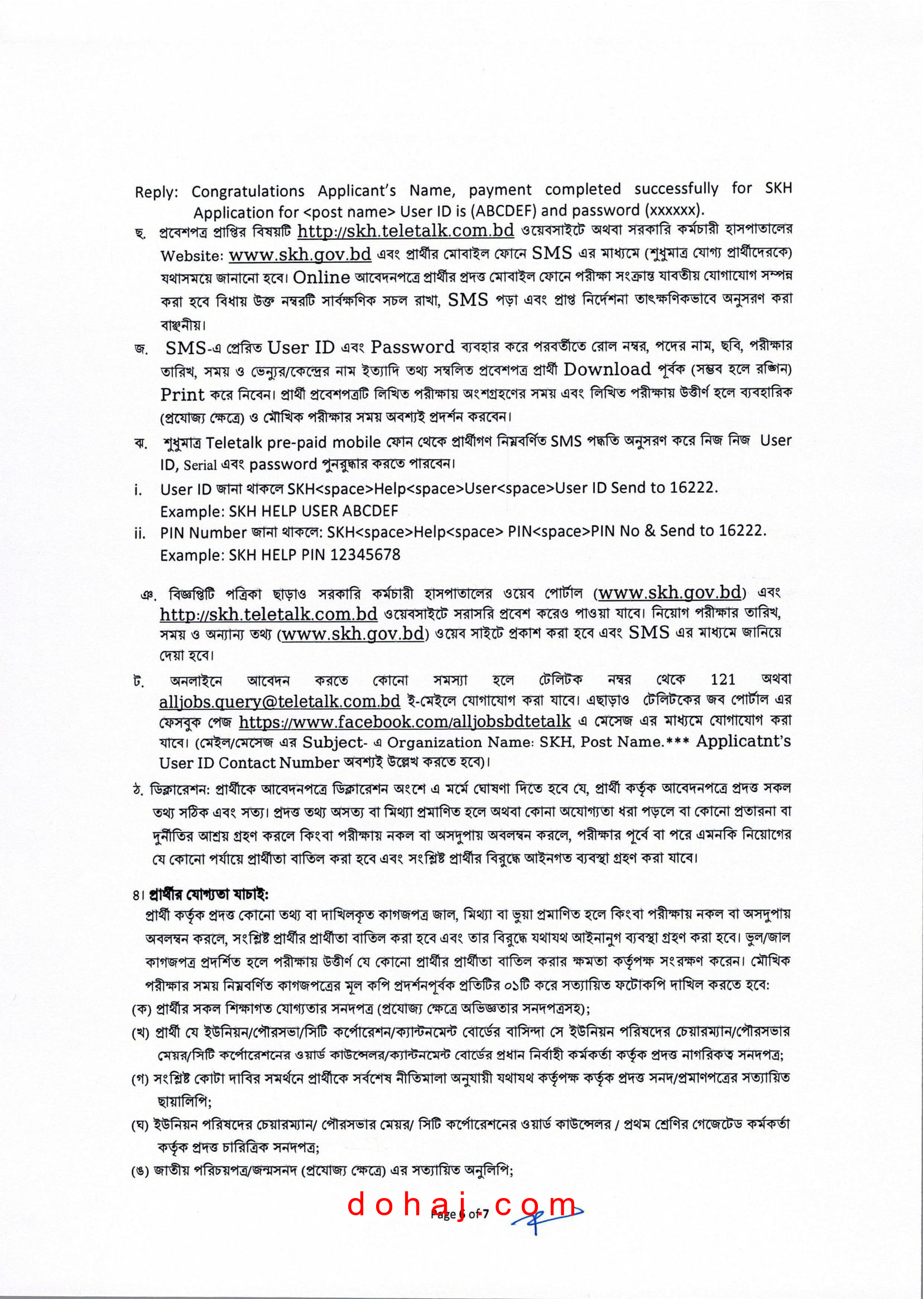 আবেদন প্রক্রিয়া: আগ্রহী প্রার্থীরা অনলাইনে http://skh.teletalk.com.bd ওয়েবসাইটের মাধ্যমে আবেন করতে পারবেন।