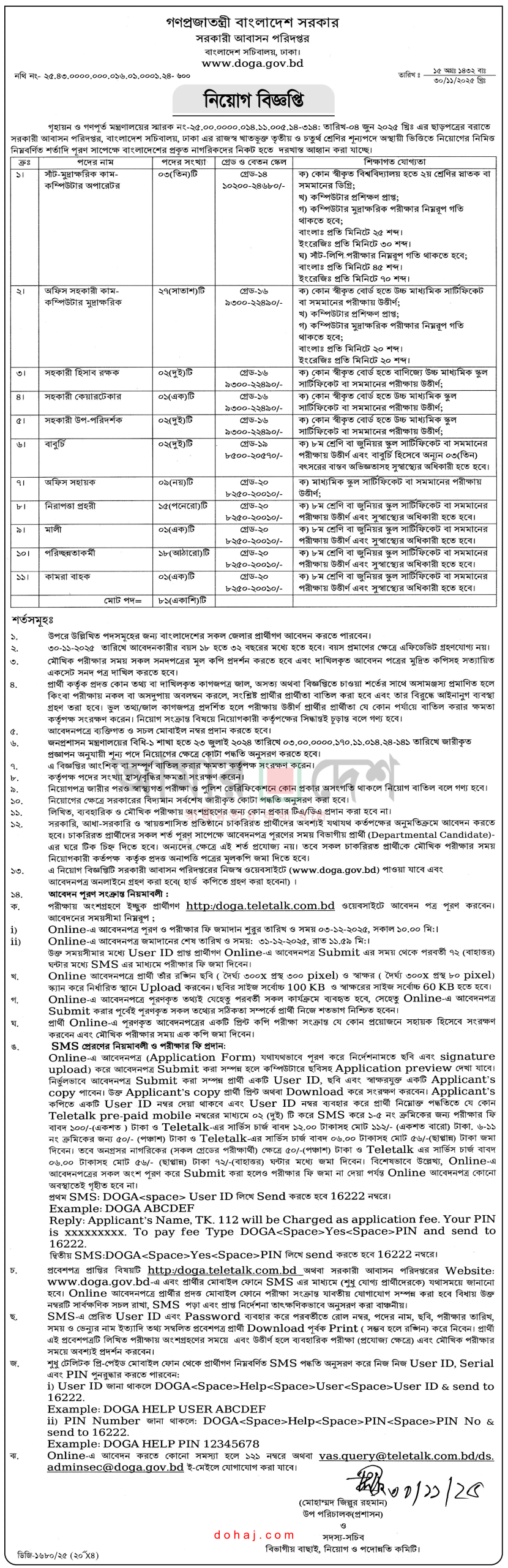 DOGA Job Circular 2025: সরকারি আবাসন পরিদপ্তর এর শূন্য পদসমূহে জনবল নিয়োগ দেয়া হবে। সরকারি আবাসন পরিদপ্তর ১১ টি পদে মোট ৮১ জনকে নিয়োগ দেবে। আগ্রহী প্রার্থীরা অনলাইনে আবেদন করতে পারবেন। পদগুলোতে নারী ও পুরুষ উভয়েই আবেদন করতে পারবেন। আগ্রহ ও যোগ্যতা থাকলে আপনিও আবেদন করতে পারেন। সম্পূর্ণ বিজ্ঞপ্তি বিস্তারিত দেওয়া হল।