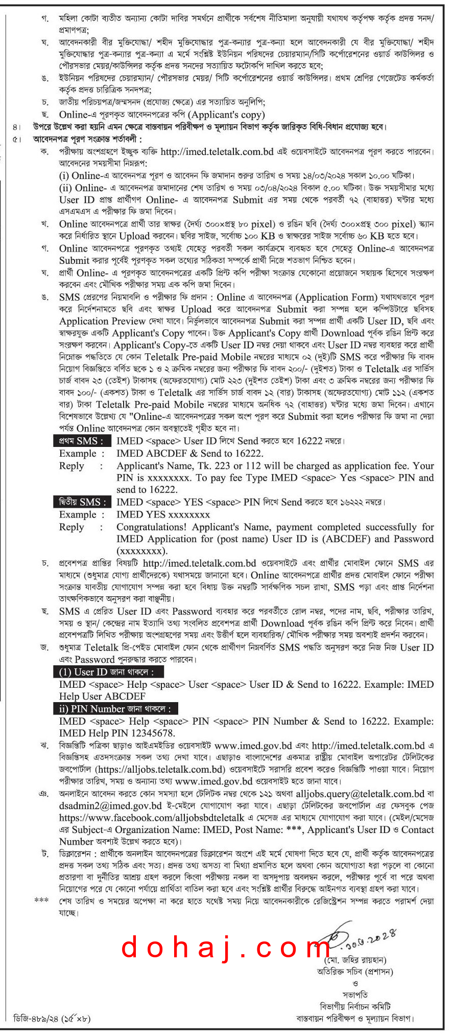 আবেদন প্রক্রিয়া: আবেদন করতে হবে অনলাইনে http://imed.teletalk.com.bd ওয়েবসাইটের মাধমে অনলাইনে আবেদনপত্র পাঠাতে হবে।