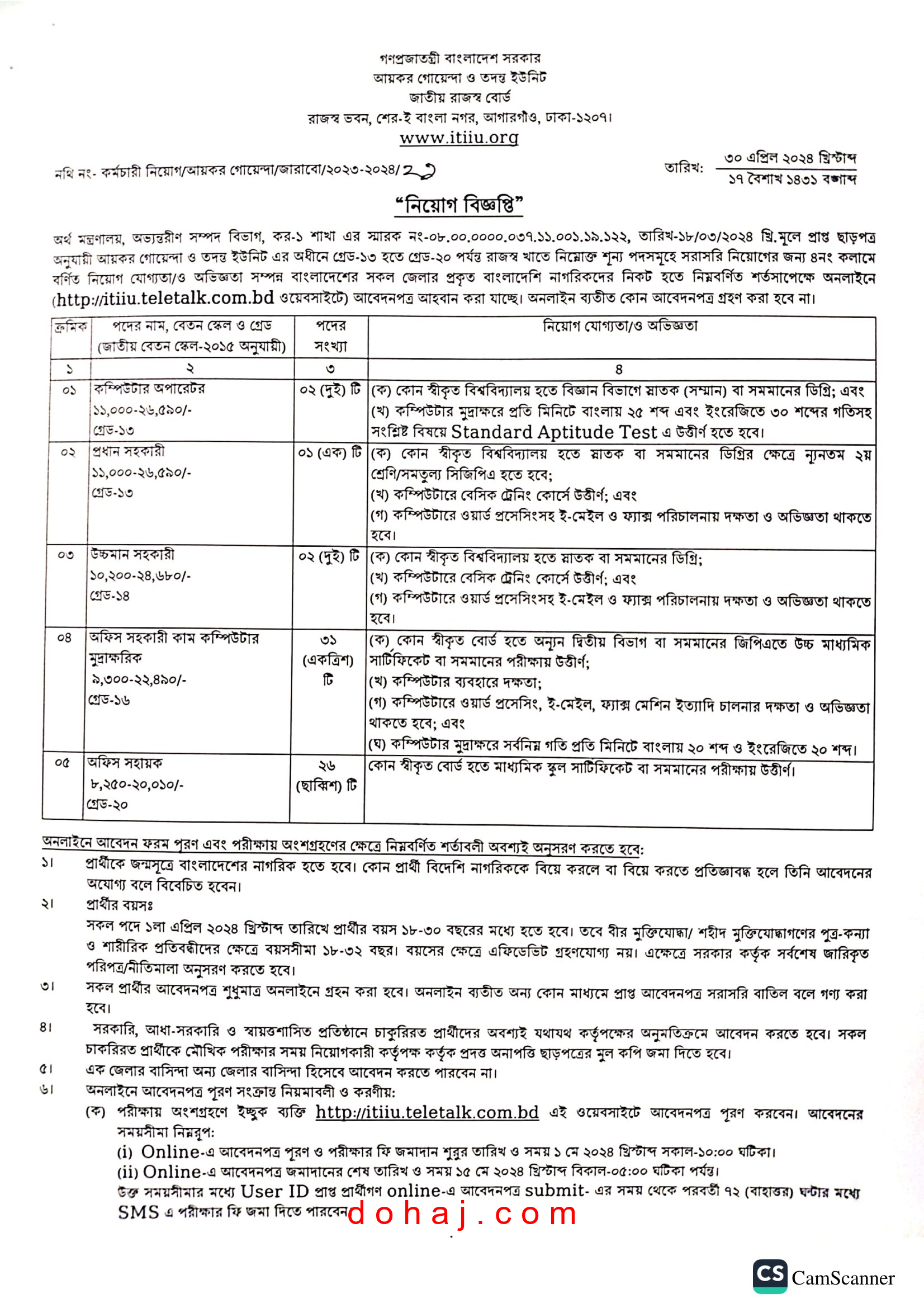 Income Tax Intelligence and Investigation Unit Job Circular: জাতীয় রাজস্ব বোর্ড এর আওতাধীন আয়কর গোয়েন্দা ও তদন্ত ইউনিট এর অধীনে ০৫ টি পদে মোট ৬২ জনকে নিয়োগ দেবে। পদগুলোতে নারী ও পুরুষ উভয়েই আবেদন করতে পারবেন। আগ্রহী প্রার্থীরা অনলাইনে আবেদন করতে পারবেন। এই চাকরিতে সকল জেলার প্রার্থীদের আবেদন করার সুযোগ আছে। সম্পূর্ণ বিজ্ঞপ্তি বিস্তারিত দেওয়া হল।