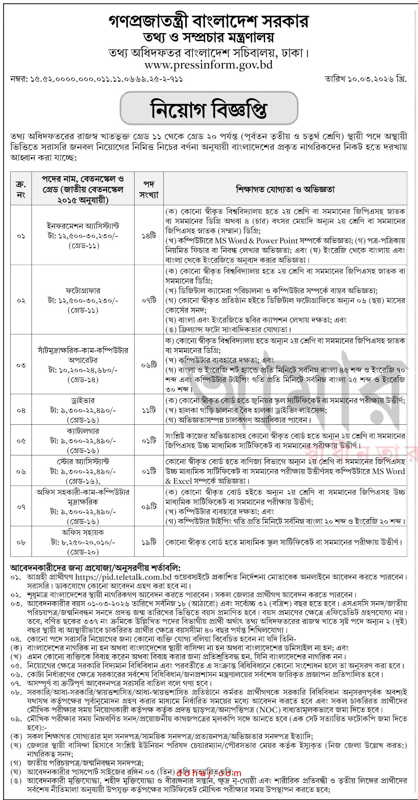 শিক্ষাগত যোগ্যতা: জেএসসি বা সমমান পাশ।