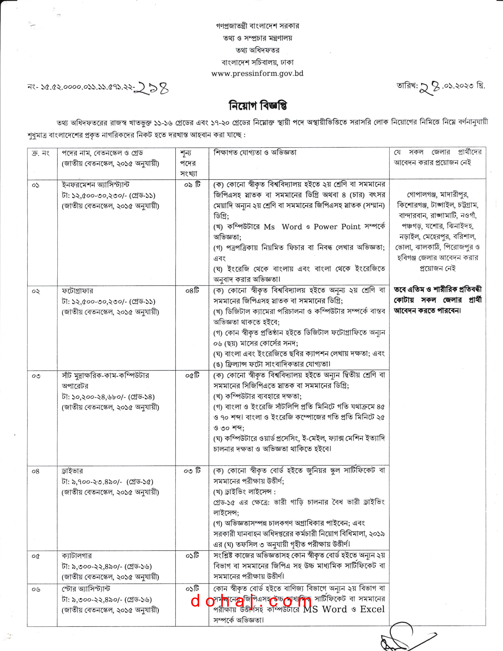 শিক্ষাগত যোগ্যতা: জেএসসি বা সমমান পাশ।