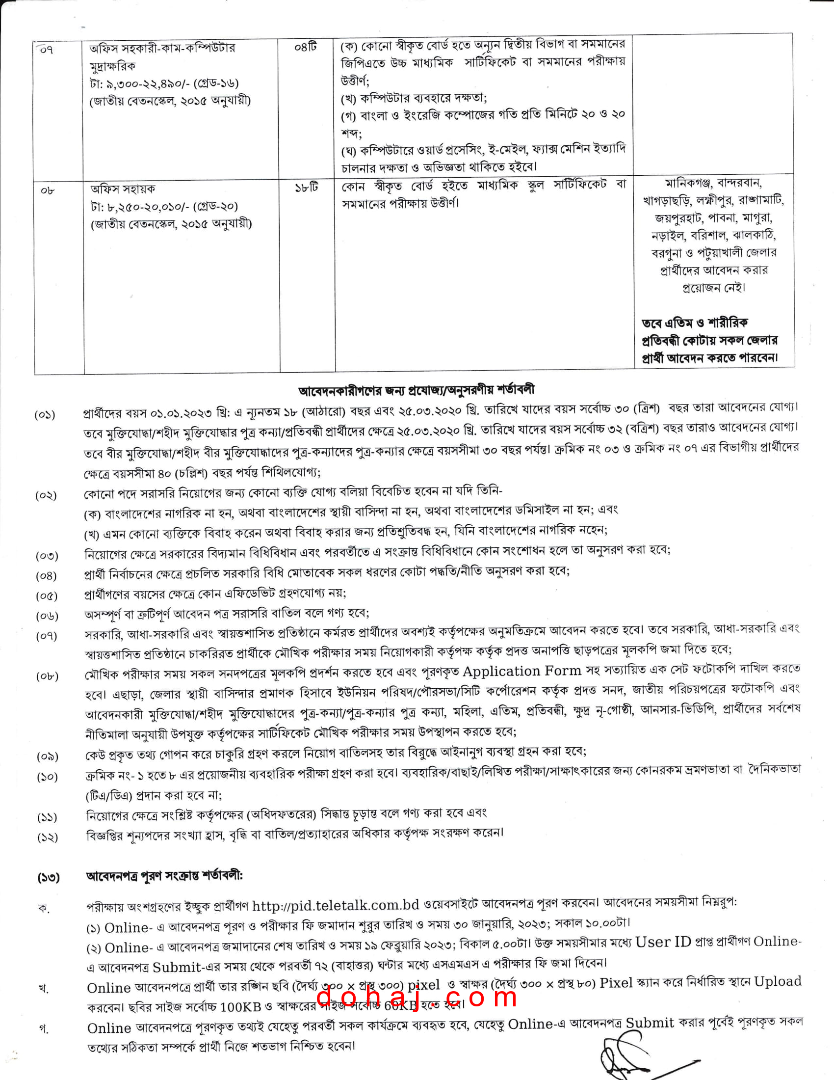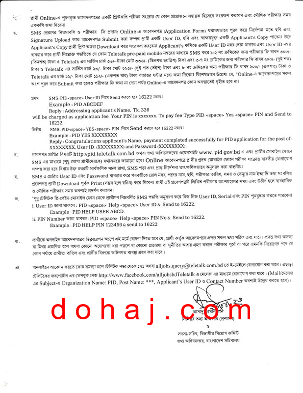 আবেদন প্রক্রিয়া: আবেদন করতে হবে অনলাইনে http://pid.teletalk.com.bd ওয়েবসাইটের মাধমে অনলাইনে আবেদনপত্র পাঠাতে হবে।