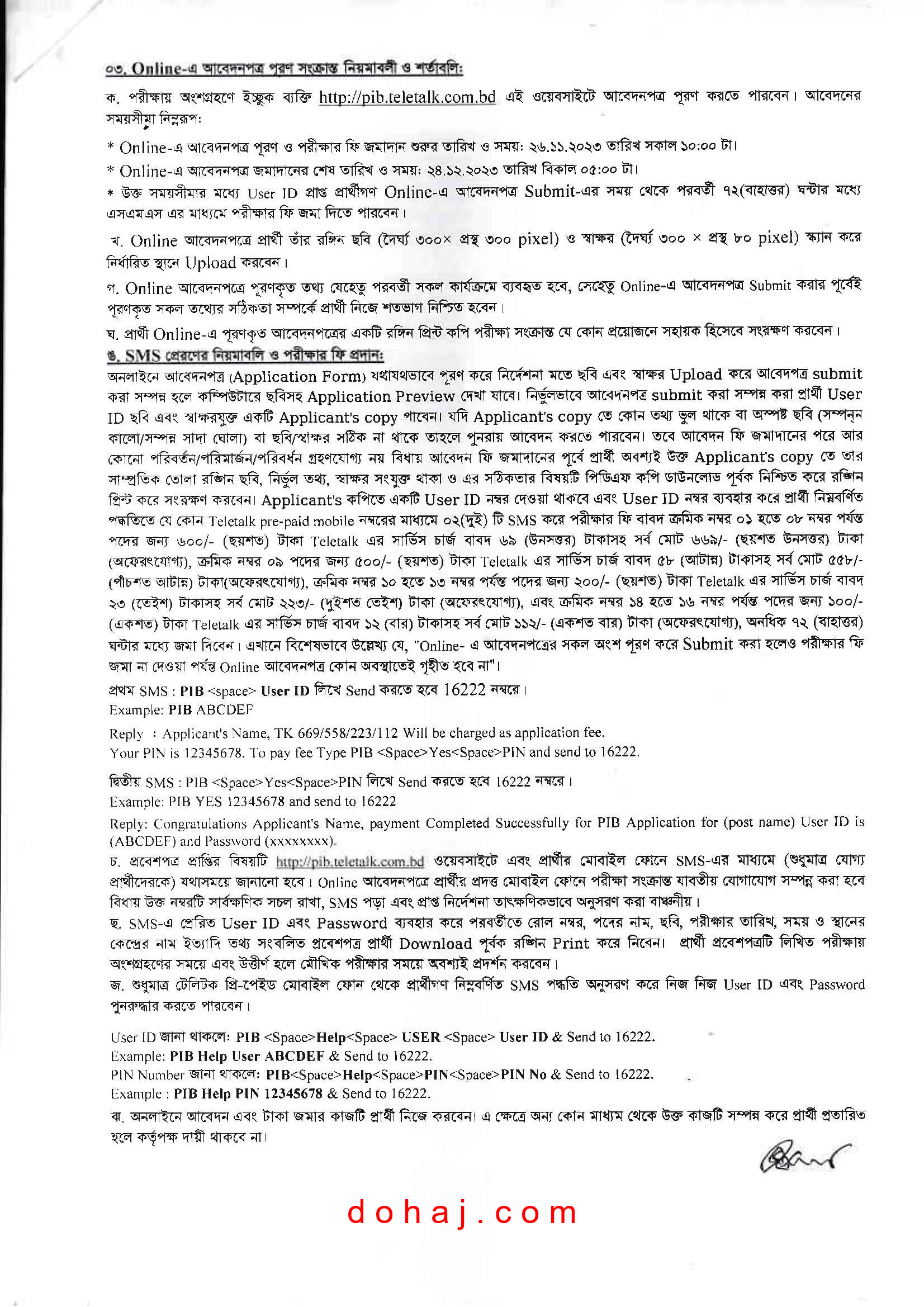আবেদন প্রক্রিয়া: আবেদন করতে হবে অনলাইনে http://pib.teletalk.com.bd ওয়েবসাইটের মাধমে অনলাইনে আবেদনপত্র পাঠাতে হবে।