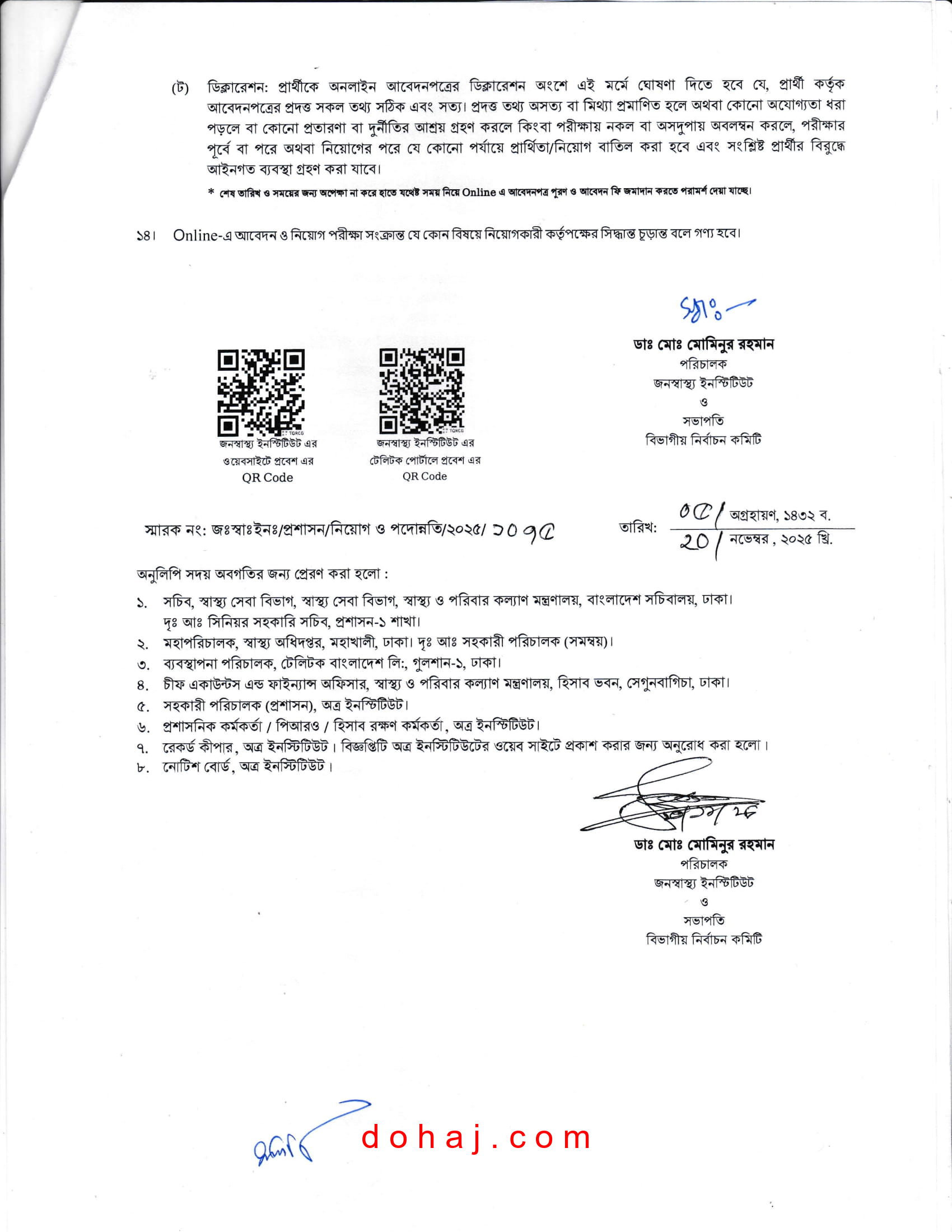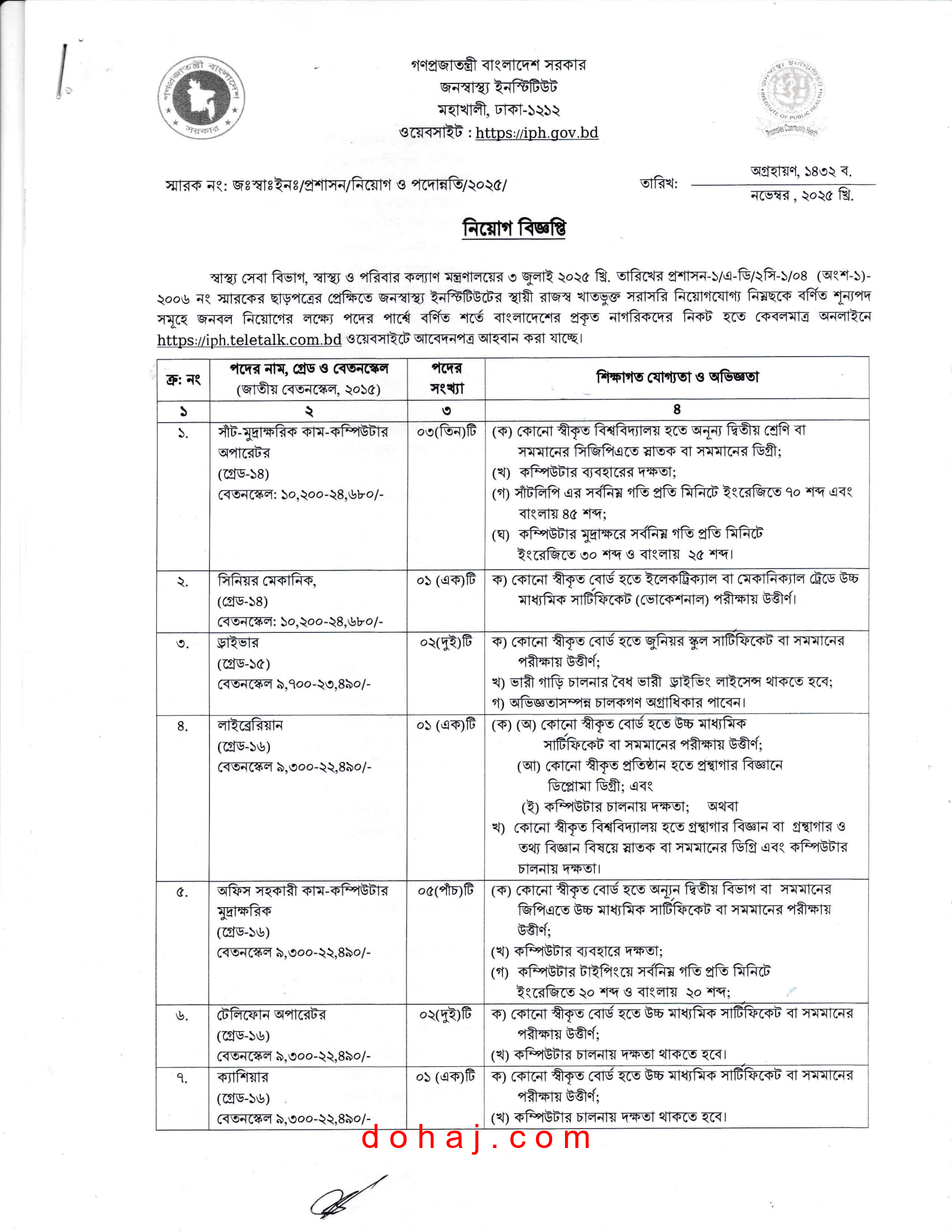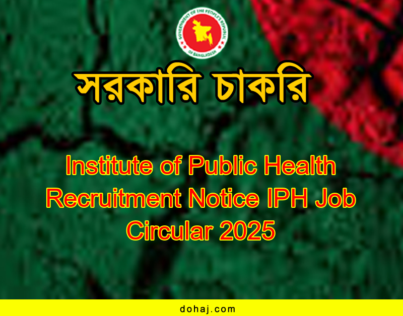 IPH Job Circular 2025: জনস্বাস্থ্য ইনস্টিটিউট এর নিম্নোক্ত স্থায়ী শূন্য পদসমূহে জনবল নিয়োগের বিজ্ঞপ্তি প্রকাশ করেছে। জনস্বাস্থ্য ইনস্টিটিউট ০৭ টি পদে মোট ১৫ জনকে নিয়োগ দেবে। পদগুলোতে নারী ও পুরুষ উভয়ই প্রার্থীরা আবেদন করতে পারবেন। আগ্রহী প্রার্থীরা অনলাইনে আবেদন করতে পারবেন। আগ্রহ ও যোগ্যতা থাকলে আপনিও আবেদন করতে পারেন। সম্পূর্ণ বিজ্ঞপ্তি বিস্তারিত দেওয়া হল।
