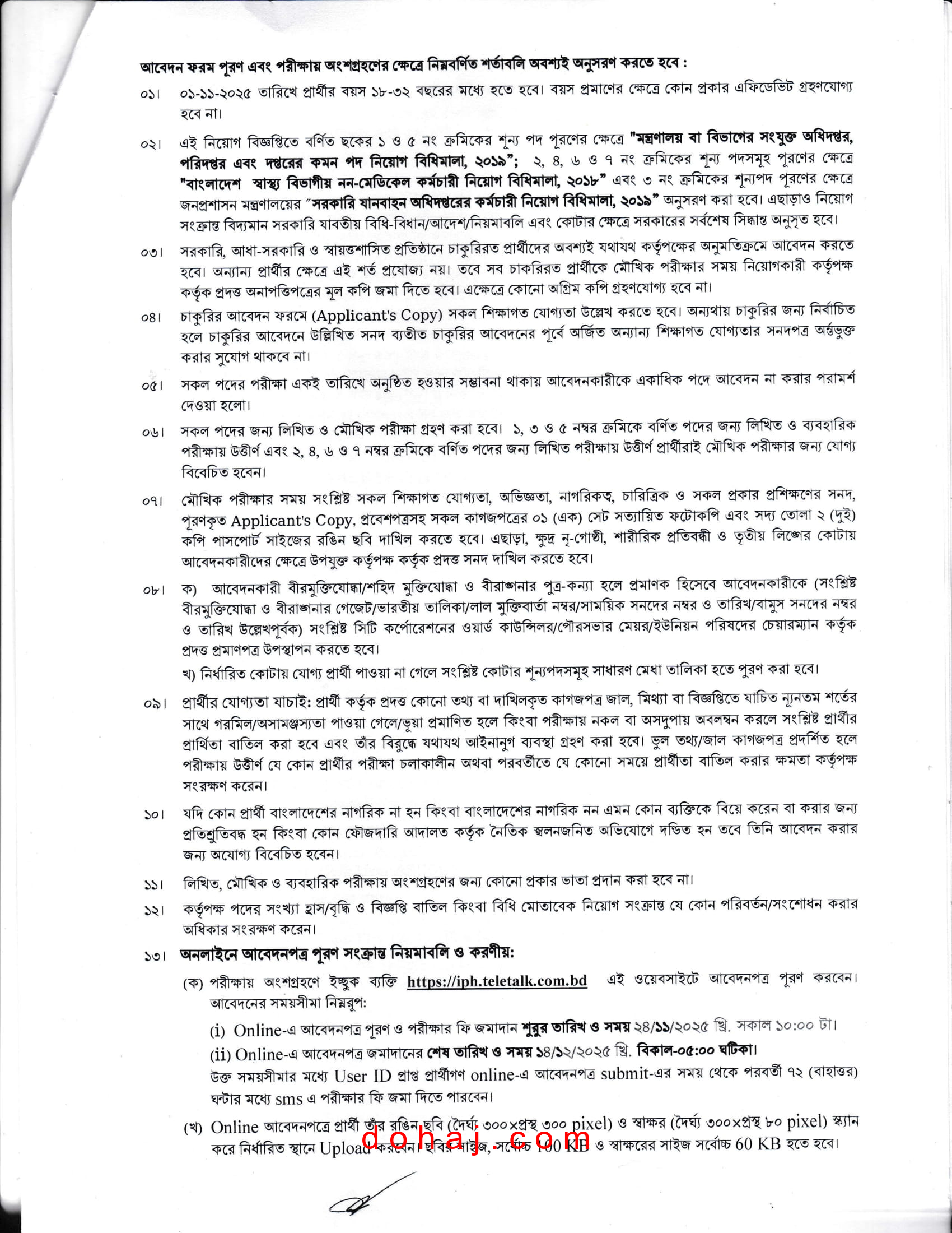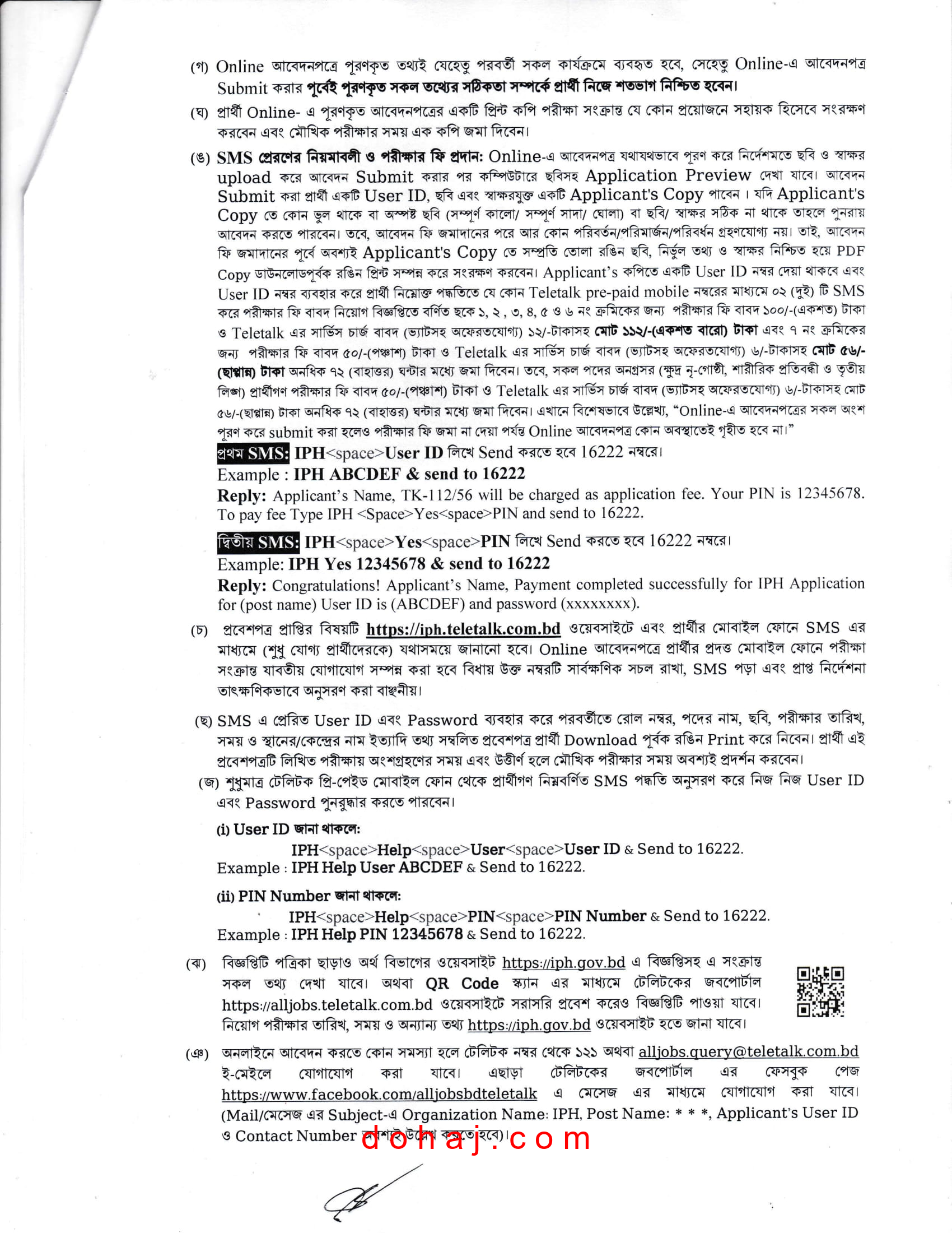 আবেদন প্রক্রিয়া: আগ্রহী প্রার্থীরা অনলাইনে https://iph.teletalk.com.bd এই ওয়েবসাইটে গিয়ে আবেদনপত্র পূরণ করতে পারবেন।