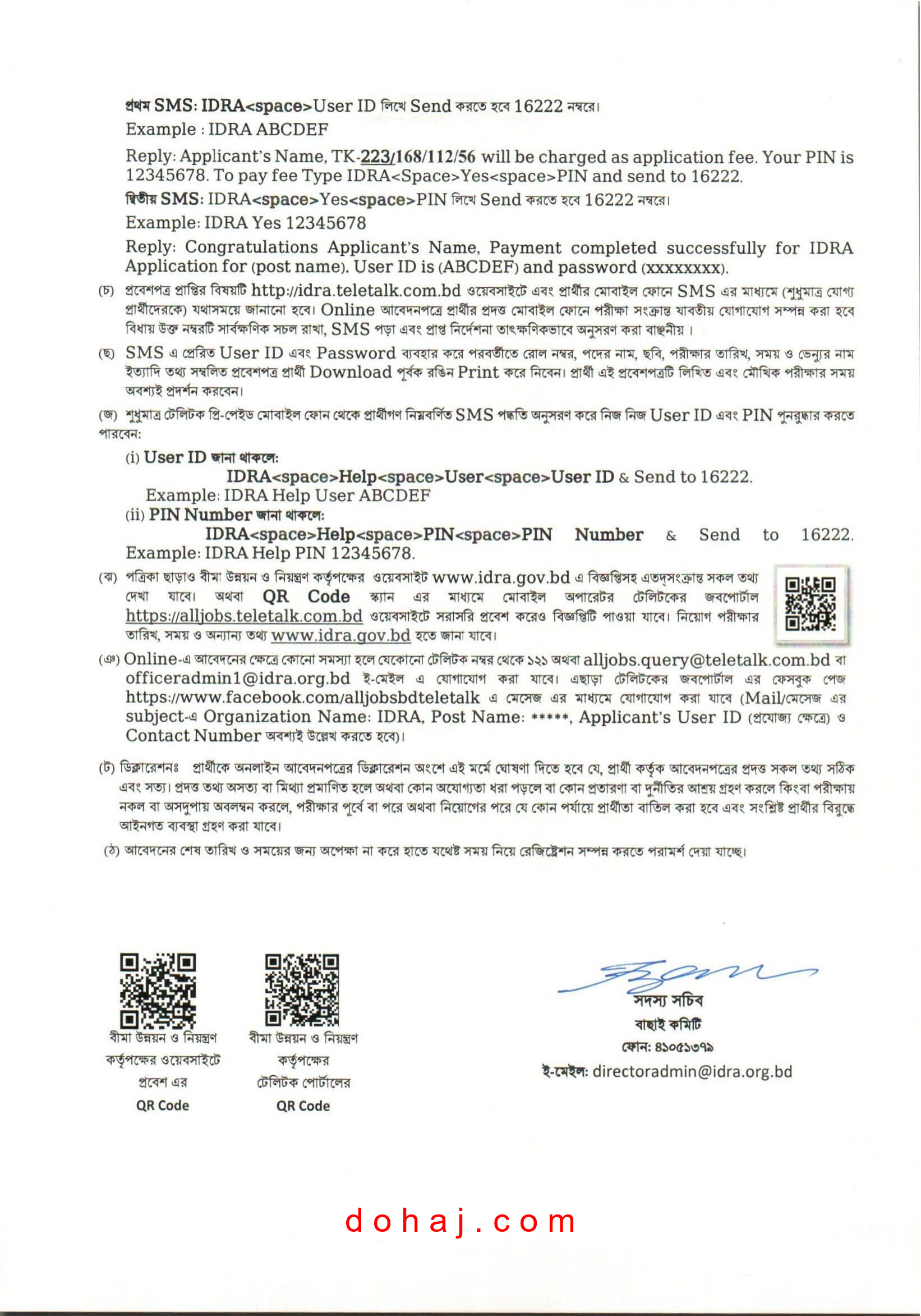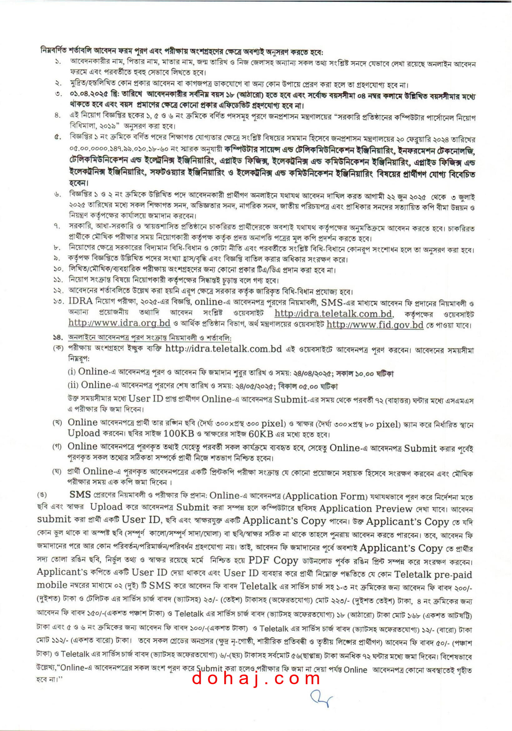 আবেদনের নিয়ম: আগ্রহী প্রার্থীরা অনলাইনে http://idra.teletalk.com.bd ওয়েবসাইটের মাধ্যমে আবেদন করতে পারবেন।
