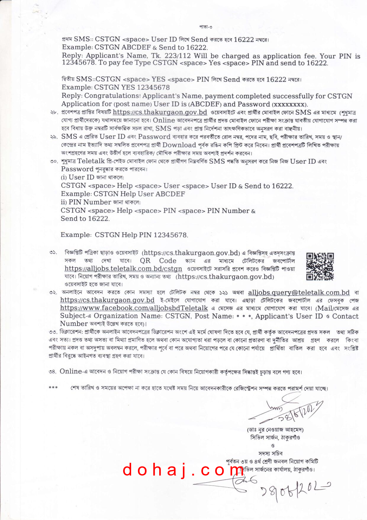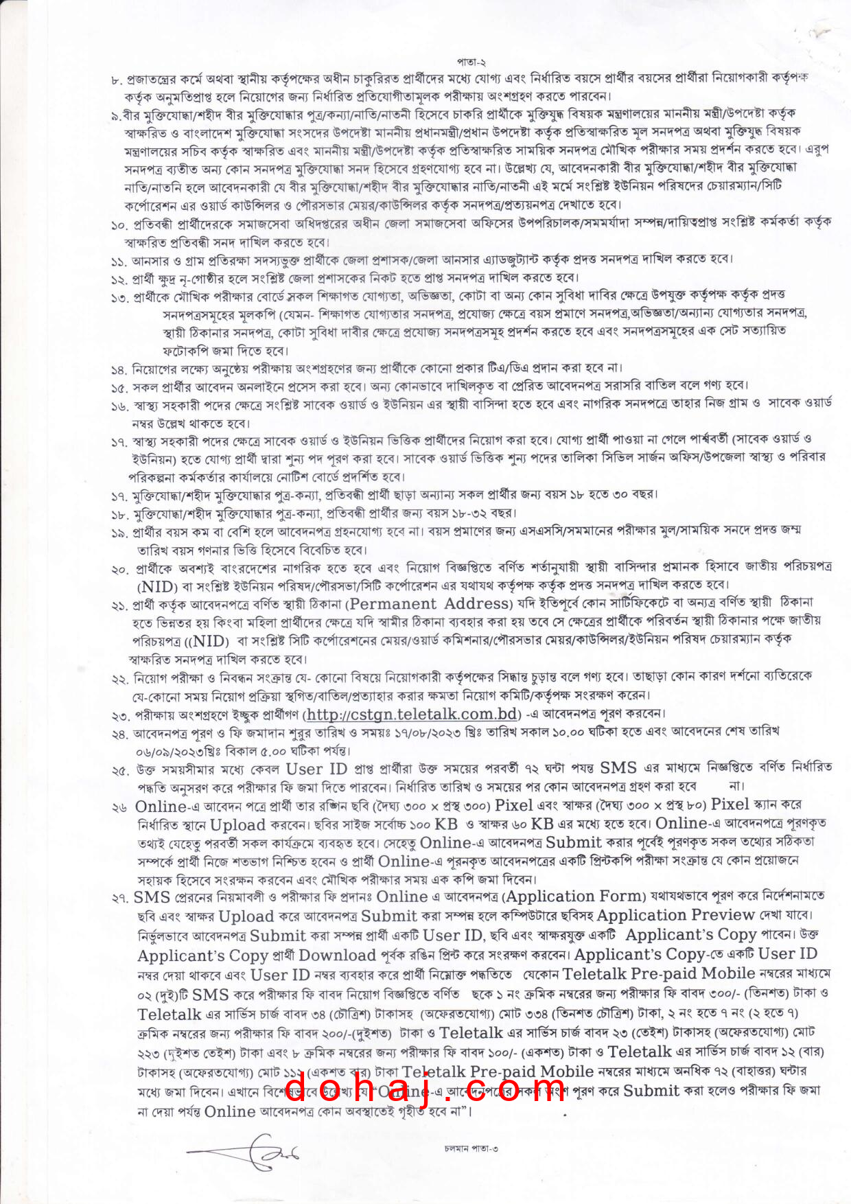 আবেদন প্রক্রিয়া: আবেদন করতে হবে অনলাইনে http://cstgn.teletalk.com.bd ওয়েবসাইটের মাধমে অনলাইনে আবেদনপত্র পাঠাতে হবে।