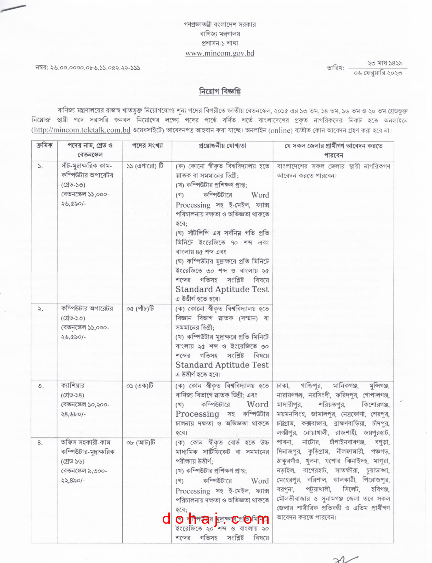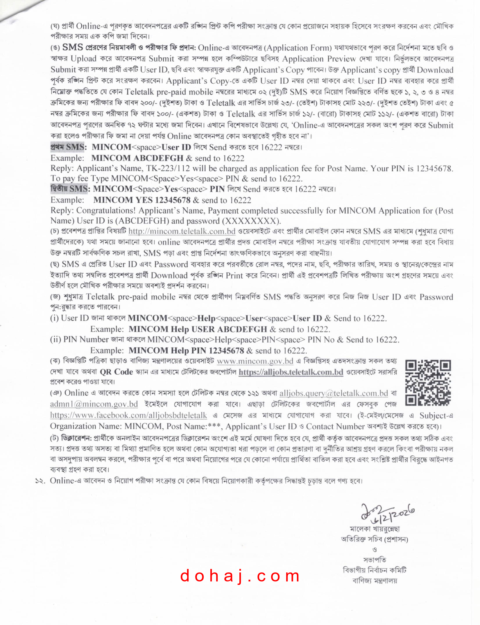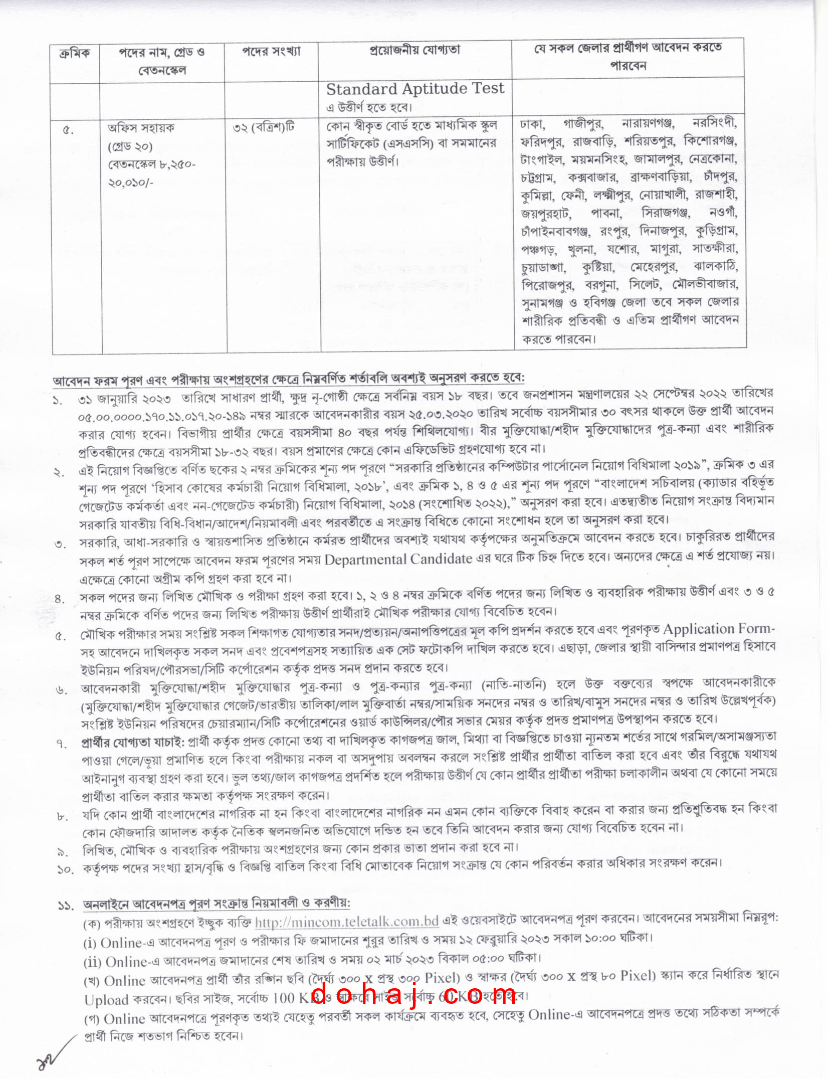 আবেদনের নিয়ম: আগ্রহী প্রার্থীরা অনলাইনে http://mincom.teletalk.com.bd ওয়েবসাইটের মাধ্যমে আবেদন করতে পারবেন।