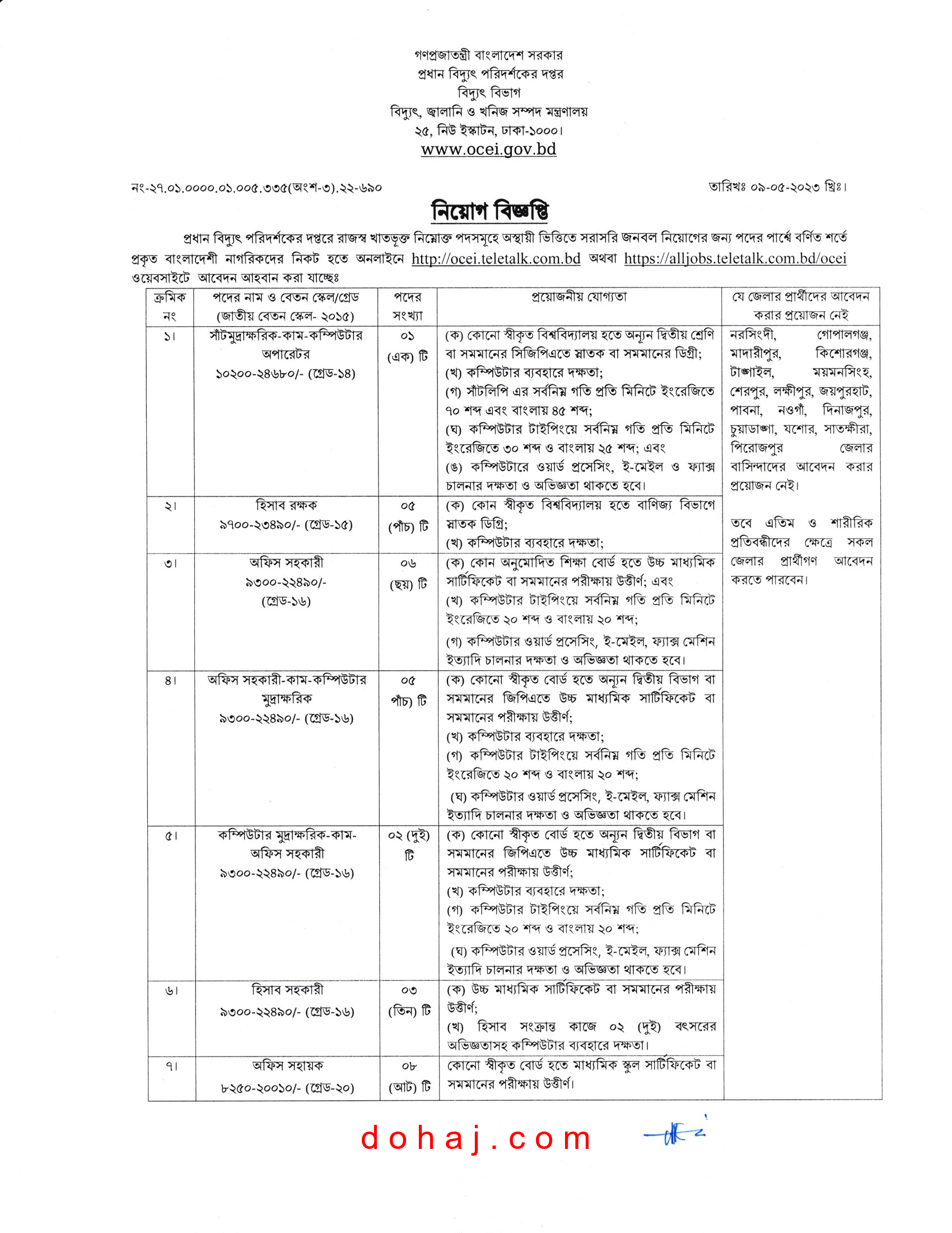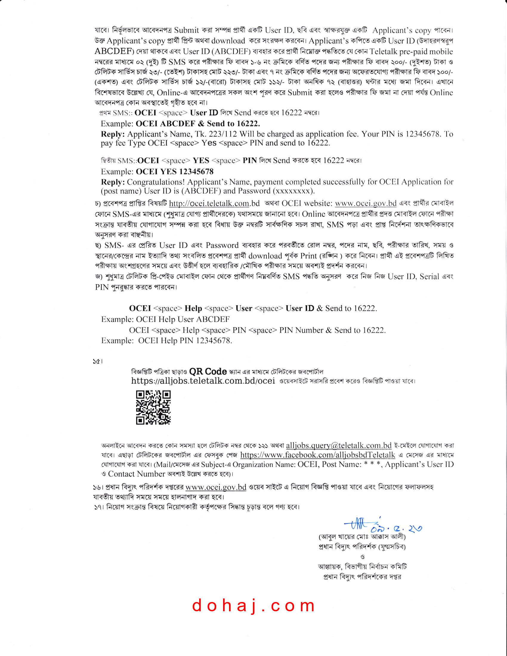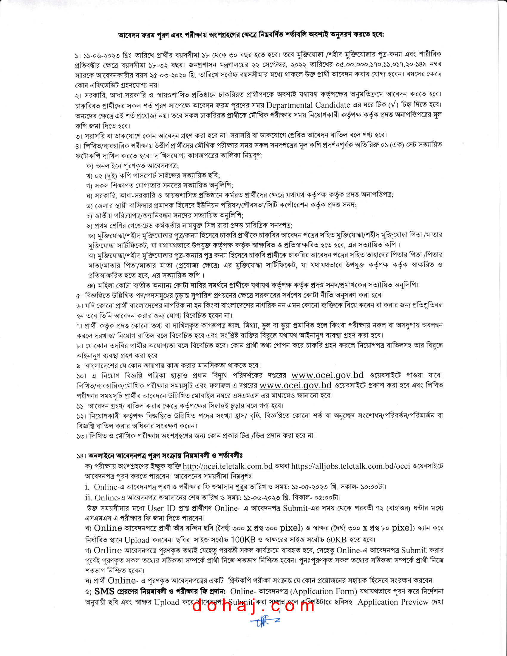 আবেদন প্রক্রিয়া: আবেদন করতে হবে অনলাইনে http://ocei.teletalk.com.bd ওয়েবসাইটের মাধমে অনলাইনে আবেদনপত্র পাঠাতে হবে।
