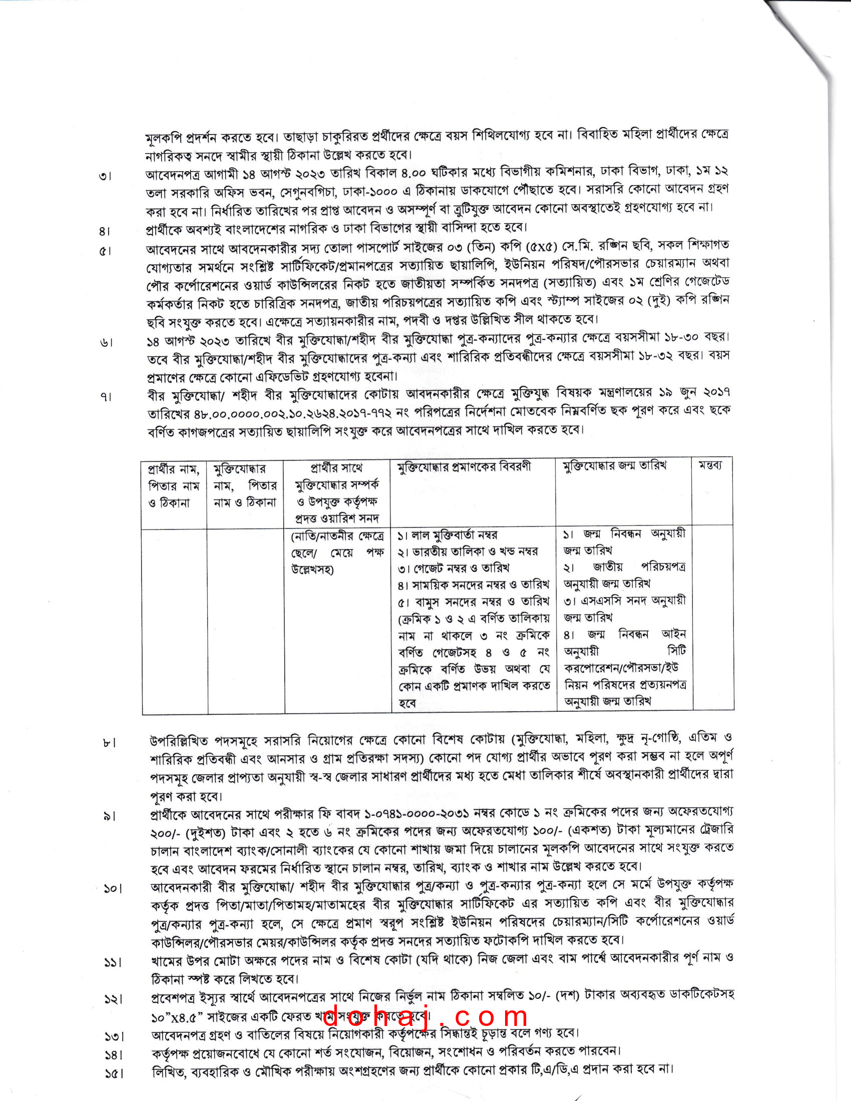 আবেদনের ঠিকানা: আবেদনপত্র পূরণ করে বিভাগীয় কমিশনার, ঢাকা বিভাগ, ঢাকা, ১ম ১২তলা সরকারি অফিস ভবন, সেগুনবাগিচা, ঢাকা-১০০০ এই ঠিকানা বরাবর আবেদনপত্র ডাকযোগে পৌঁছাতে হবে।