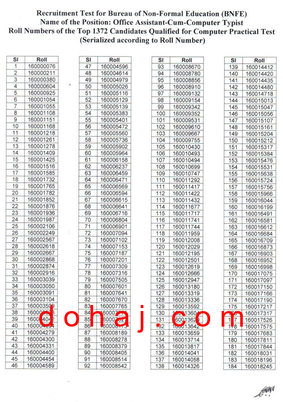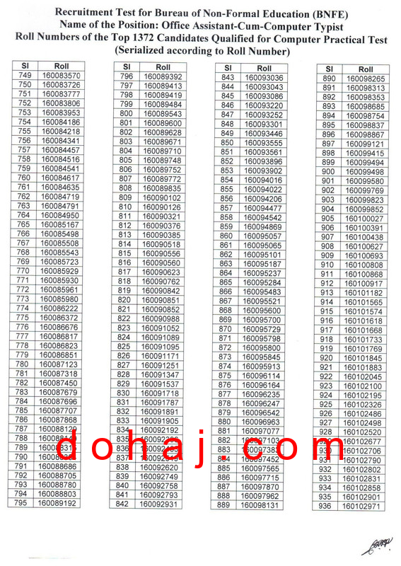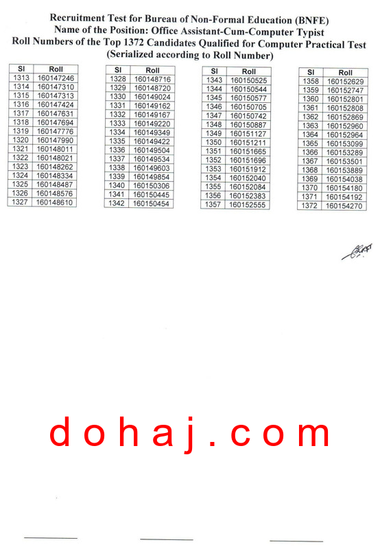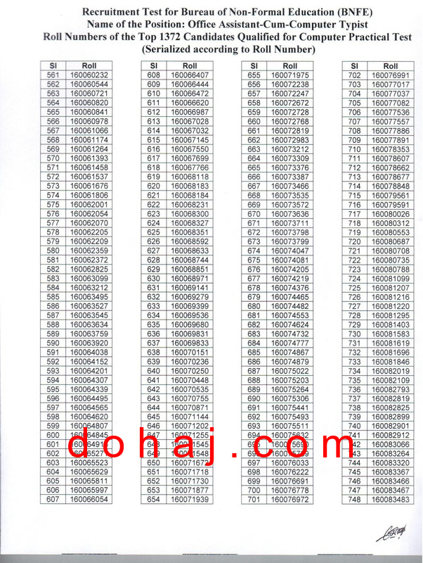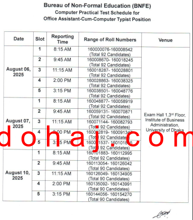 BNFE Job Circular Exam Result and Practical Test Date: প্রাথমিক ও গণশিক্ষা মন্ত্রণালয়ের আওতাধীন উপানুষ্ঠানিক শিক্ষা ব্যুরোর উপজেলা পর্যায়ে রাজস্ব খাতভুক্ত অফিস সহকারী-কাম-কম্পিউটার মুদ্রাক্ষরিক পদের লিখিত পরীক্ষা ২৫.০৭.২০২৫ তারিখ শুক্রবার অনুষ্ঠিত হয়েছে। উক্ত পরীক্ষার মাধ্যমে ব্যবহারিক পরীক্ষার জন্য নির্বাচিত প্রার্থীদের তালিকা (রোল নম্বর) প্রকাশ করা হলো।