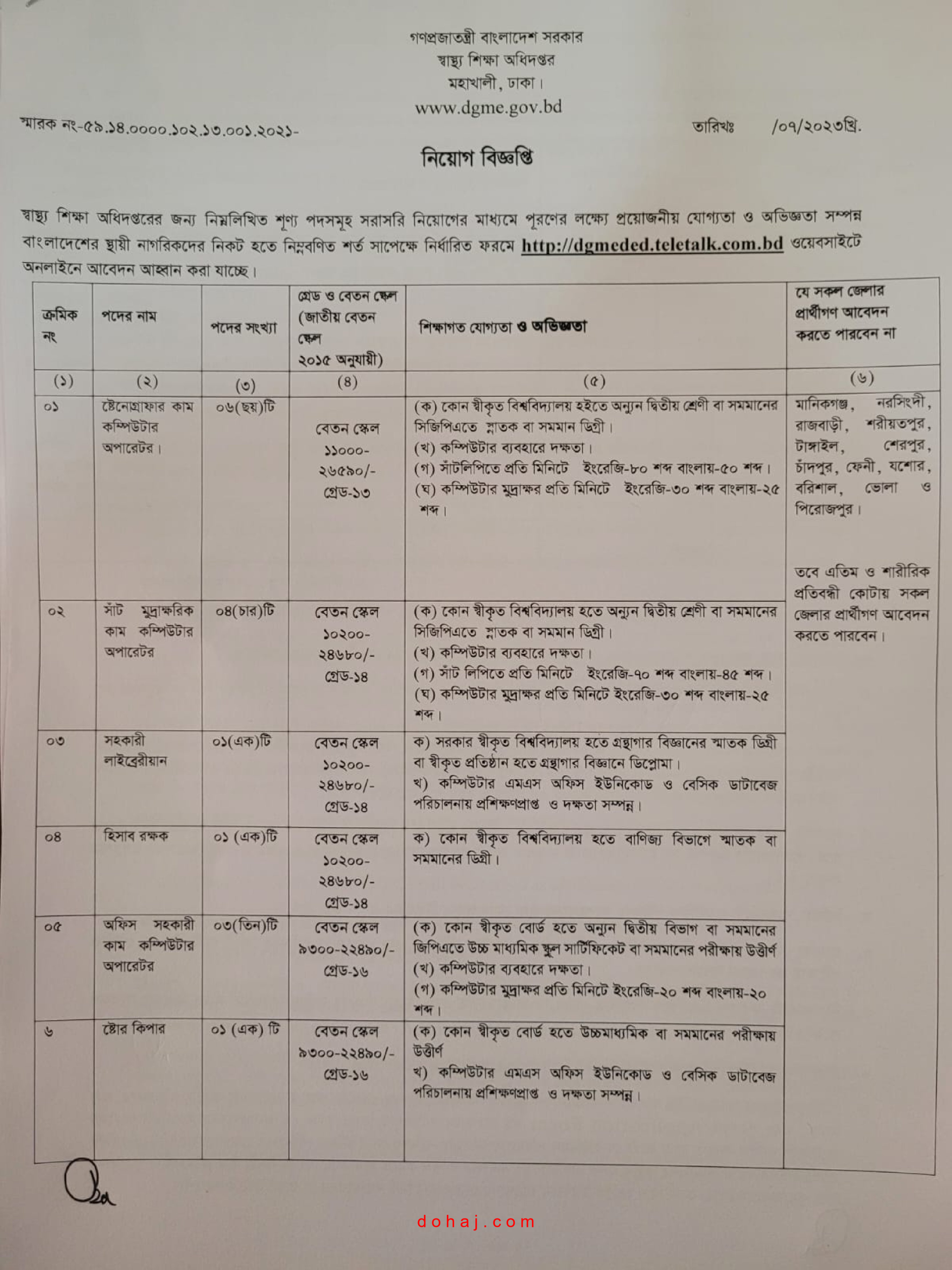 আবেদনের নিয়ম: আগ্রহী প্রার্থীরা অনলাইনে http://dgmeded.teletalk.com.bd ওয়েবসাইটের মাধ্যমে আবেন করতে পারবেন।