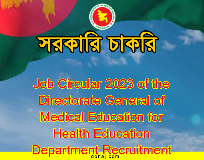 Directorate General of Medical Education (DGME) Job Circular 2023: স্বাস্থ্য শিক্ষা ও পরিবার কল্যাণ বিভাগের স্বাস্থ্য শিক্ষা অধিদপ্তর এর শূন্য পদসমূহে সরাসরি জনবল নিয়োগের জন্য নিয়োগ বিজ্ঞপ্তি প্রকাশ হয়েছে। স্বাস্থ্য শিক্ষা অধিদপ্তর ০৭ টি পদে মোট ৩৭ জনকে নিয়োগ দেবে। উক্ত পদ গুলোতে নারী-পুরুষ উভয়ই আবেদন করতে পারবেন। আগ্রহী প্রার্থীরা অনলাইনে আবেদন করতে পারবেন। সম্পূর্ণ বিজ্ঞপ্তি (DGME Job Circular 2023) বিস্তারিত দেওয়া হল। সরকারি বেসরকারি সকল চাকরির খবর সবার আগে পড়তে আমাদের চাকরির খবর পেজে বিজিট করুন।