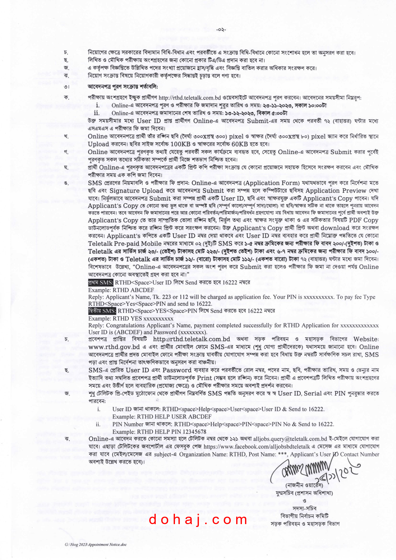 আবেদনের নিয়ম: আগ্রহী প্রার্থীরা অনলাইনে http://rthd.teletalk.com.bd ওয়েবসাইটের মাধ্যমে আবেদন করতে পারবেন।