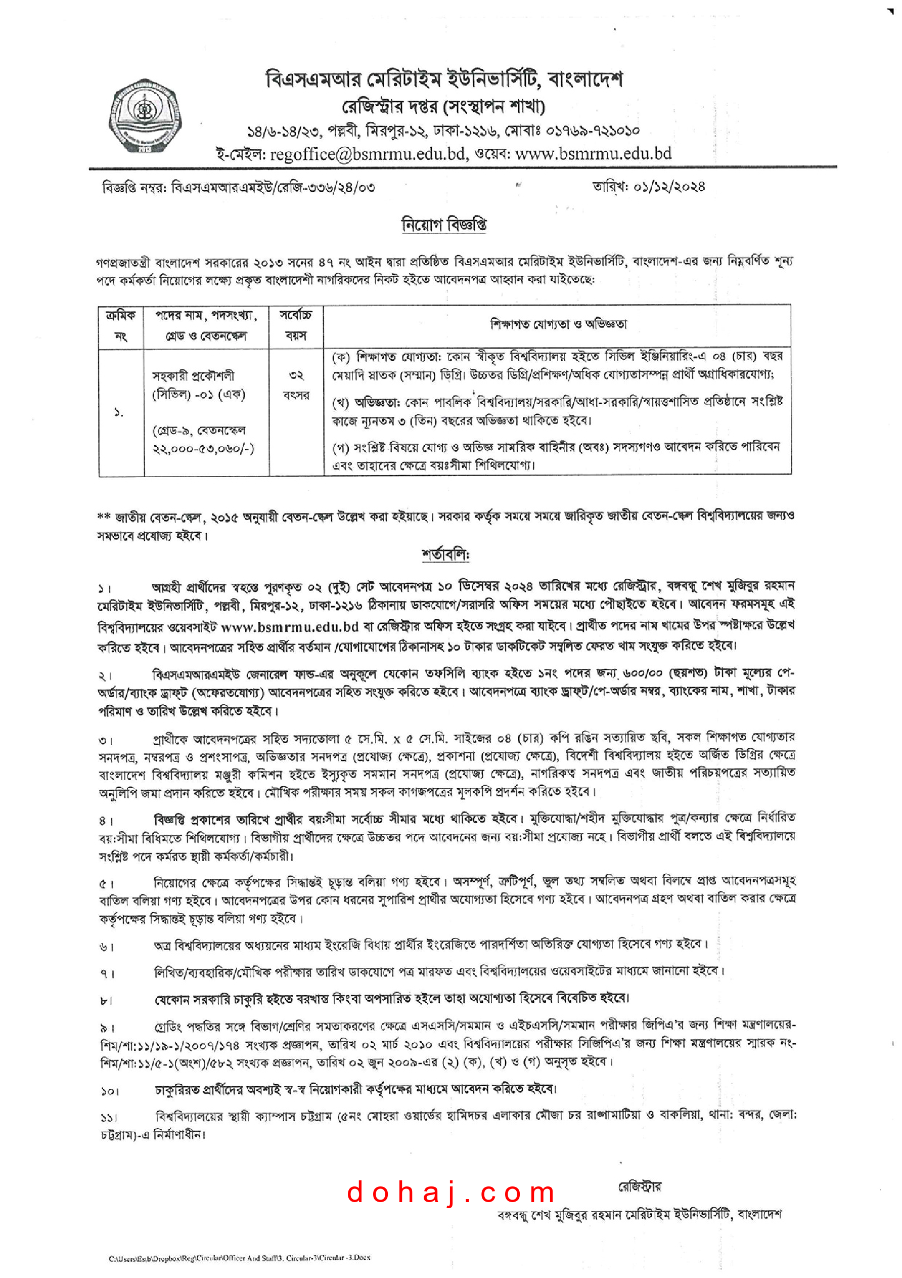 আবেদনের ঠিকানা: প্রার্থীকে রেজিস্ট্রার, বঙ্গবন্ধু শেখ মুজিবুর রহমান মেরিটাইম ইউনিভার্সিটি, পল্লবী, মিরপুর-১২, ঢাকা-১২১৬ বরাবর আবেদনপত্র পাঠাতে হবে।