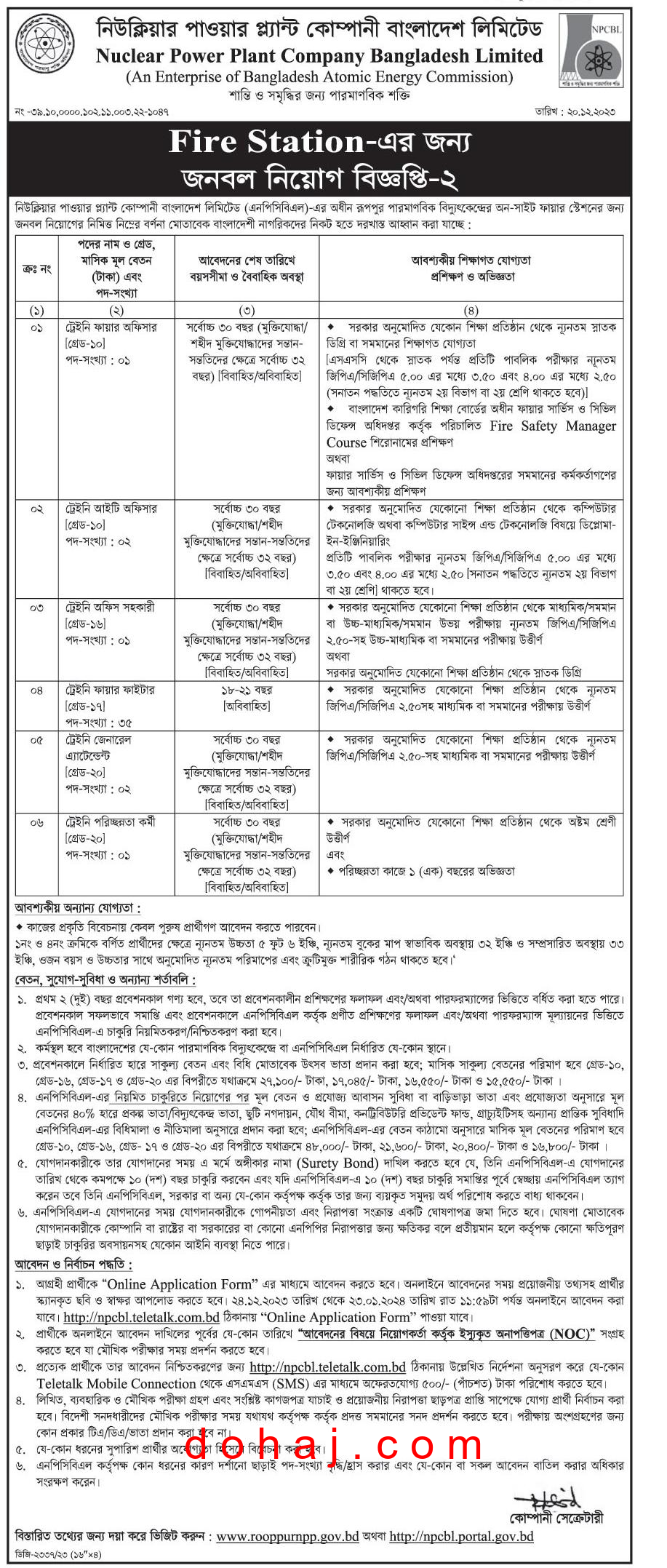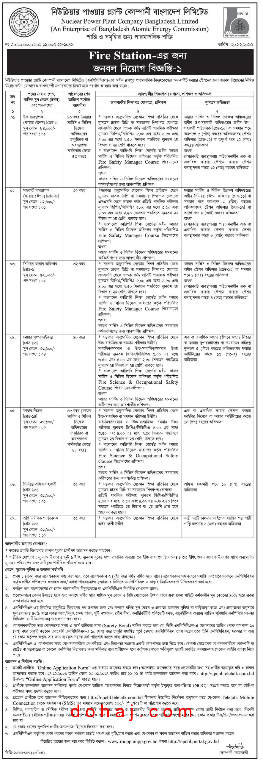 নিউক্লিয়ার পাওয়ার প্লান্ট কোম্পানি বাংলাদেশ লিমিটেড একাধিক পদে জনবল নিয়োগের লক্ষ্যে নিয়োগ বিজ্ঞপ্তি প্রকাশ করেছে। প্রতিষ্টানটি ১৩ টি পদে মোট ৬৫ জনের নিয়োগ বিজ্ঞপ্তি প্রকাশ করেছে। আগ্রহী প্রার্থীদের নিকট থেকে দরখাস্ত আহ্বান করা হয়েছে। পদগুলোতে নারী ও পুরুষ উভয়েই আবেদন করতে পারবেন। আগ্রহী প্রার্থীরা অনলাইনে আবেদন করতে পারবেন। আগ্রহ ও যোগ্যতা থাকলে আপনিও আবেদন করতে পারেন। সম্পূর্ণ বিজ্ঞপ্তি বিস্তারিত দেওয়া হল।