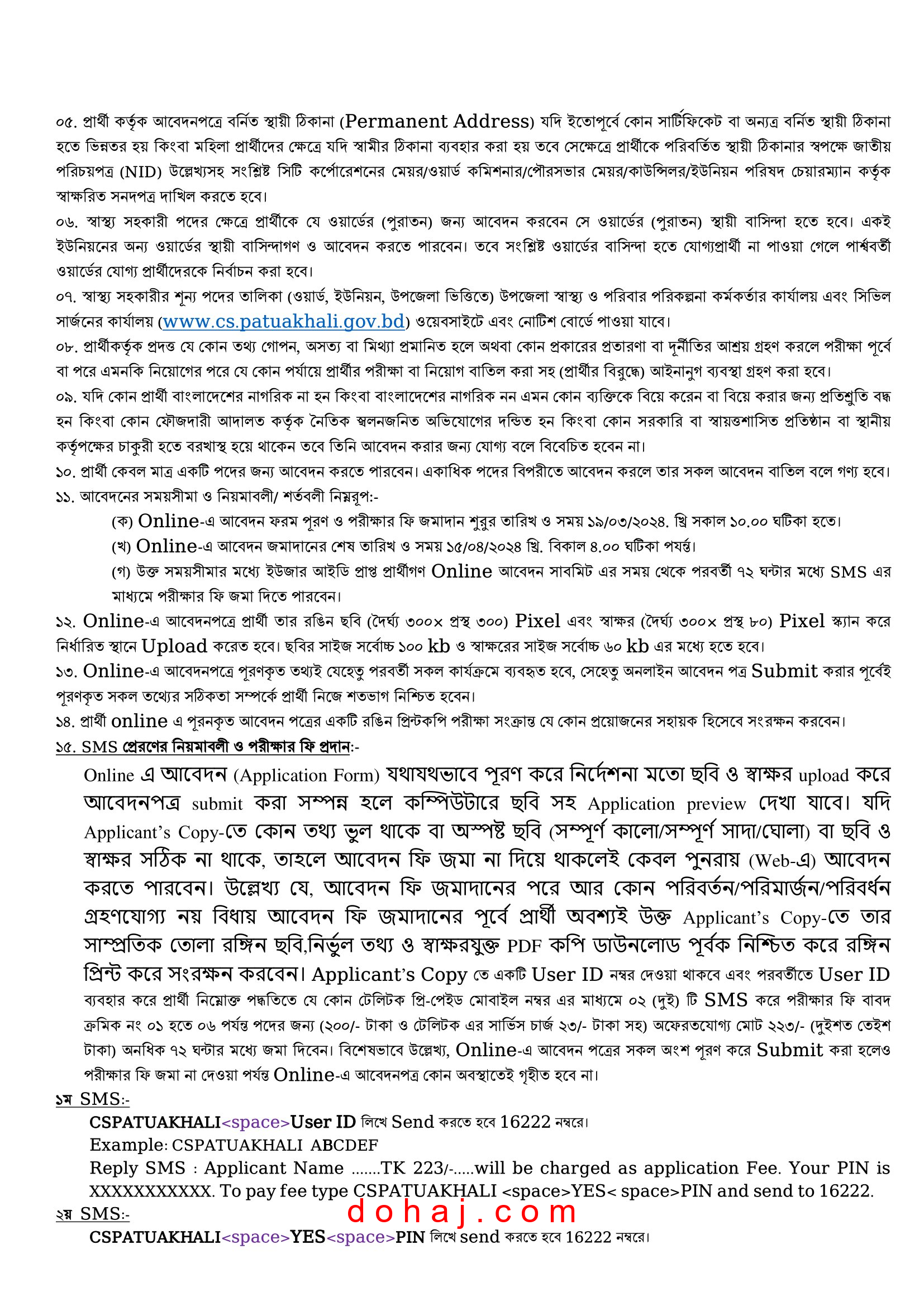 আবেদন প্রক্রিয়া: আগ্রহী প্রার্থীরা অনলাইনে http://cspatuakhali.teletalk.com.bd এই ওয়েবসাইটে গিয়ে আবেদনপত্র পূরণ করতে পারবেন।