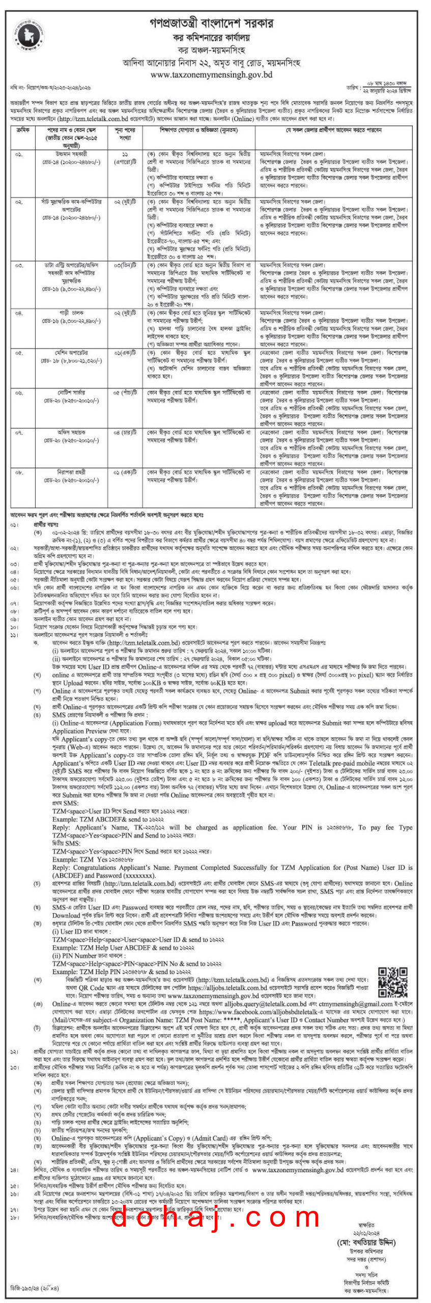 আবেদন প্রক্রিয়া: আগ্রহী প্রার্থীরা অনলাইনে http://tzm.teletalk.com.bd এই ওয়েবসাইটে গিয়ে আবেদনপত্র পূরণ করতে পারবেন।
