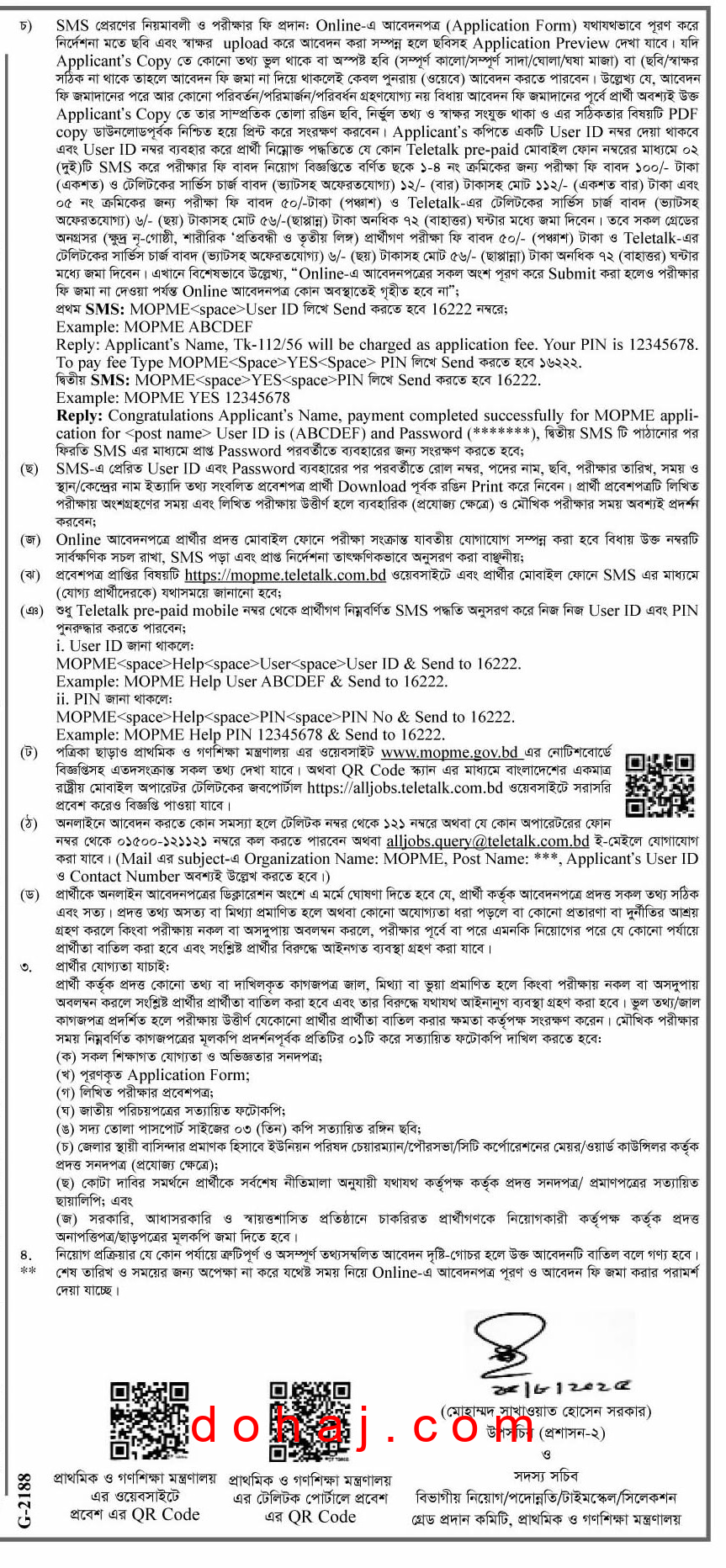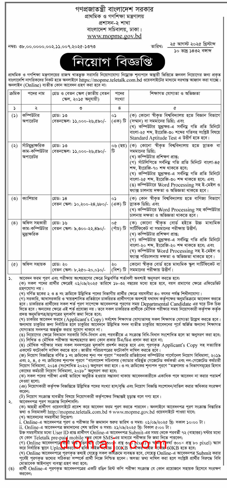 আবেদনের নিয়ম: আগ্রহী প্রার্থীরা অনলাইনে http://mopme.teletalk.com.bd এই ওয়েবসাইটের মাধ্যমে আবেদন করতে পারবেন।
