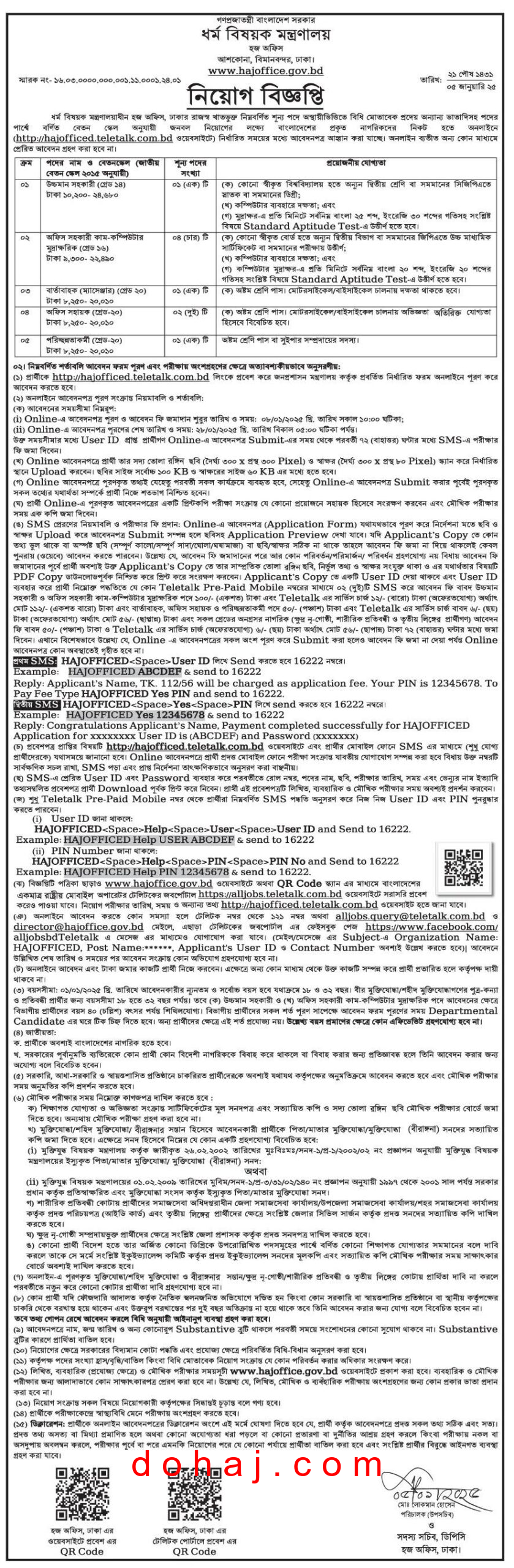 আবেদন প্রক্রিয়া: আগ্রহী প্রার্থীরা অনলাইনে http://hajofficed.teletalk.com.bd/ এই ওয়েবসাইটে গিয়ে আবেদনপত্র পূরণ করতে পারবেন।