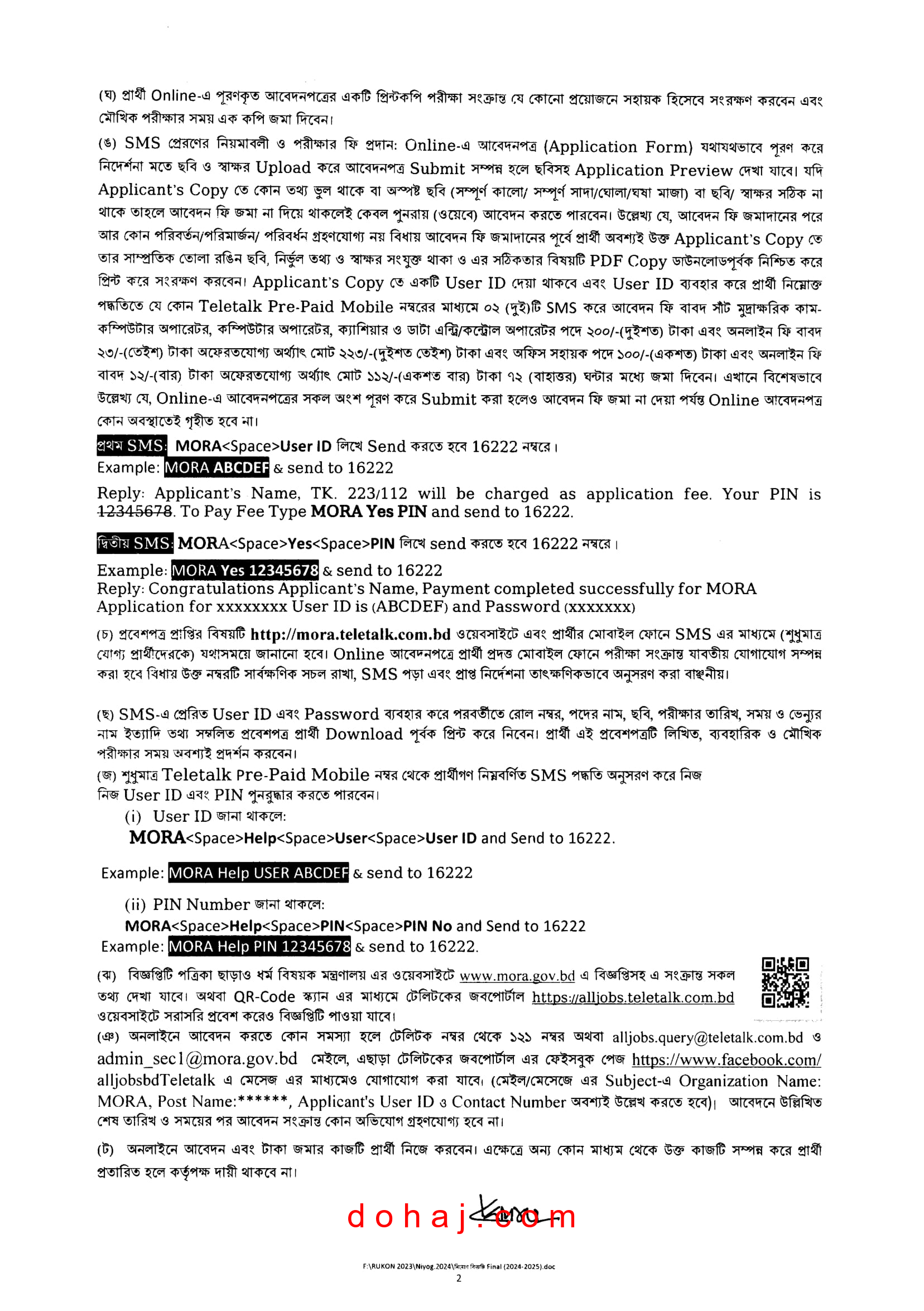 আবেদন প্রক্রিয়া: আগ্রহী প্রার্থীরা অনলাইনে http://mora.teletalk.com.bd এই ওয়েবসাইটে গিয়ে আবেদনপত্র পূরণ করতে পারবেন।
