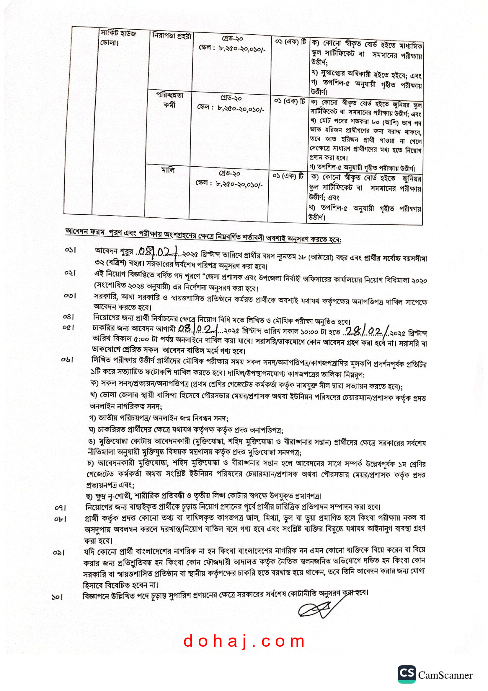 শিক্ষাগত যোগ্যতা: জেএসসি বা সমমান পরিক্ষায় উত্তীর্ণ।