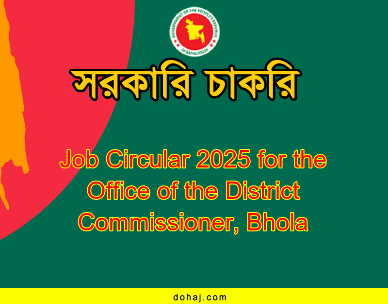 ভোলা জেলা প্রশাসকের কার্যালয় শূন্য পদে লোক নিয়োগ দেয়া হবে। ভোলা জেলা প্রশাসক ৯ পদে মোট ৩৭ জনকে নিয়োগ দেবে। এই চাকরিতে ভোলা জেলার স্থায়ী বাসিন্দারা শুধু আবেদন করতে পারবেন। পদগুলোতে নারী ও পুরুষ উভয়ই প্রার্থীরা অনলাইনে আবেদন করতে পারবেন। সম্পূর্ণ বিজ্ঞপ্তি বিস্তারিত দেওয়া হল।
